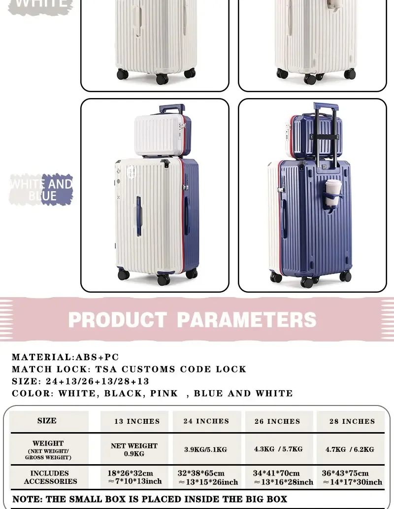 - Chic Color Options: Travel in style. Available in sophisticated Black, vibrant White and Blue, classic White, and elegant Pink sets.