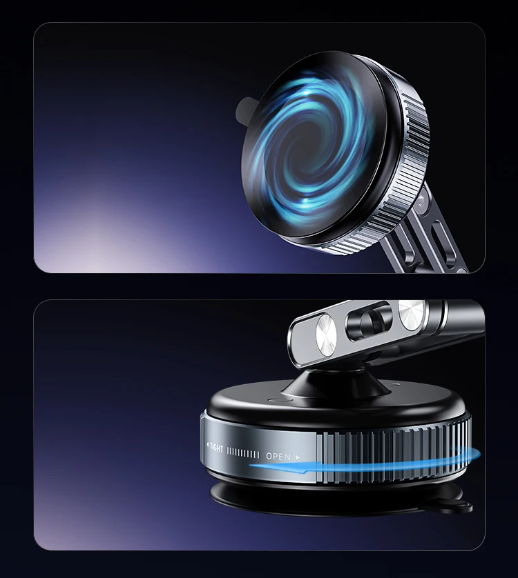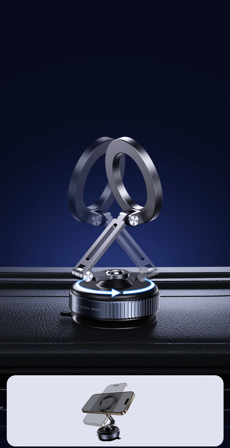 This magnetic phone holder enhances your driving experience by securely holding your device within easy reach and sight. Its 360-degree rotation feature allows you to switch between portrait and landscape modes effortlessly, making navigation clearer and safer. The vacuum adsorption mechanism provides a strong hold without leaving residue or causing damage, ensuring your phone remains stable even on bumpy roads. Easy to install and operate, this holder eliminates distractions, promotes safer driving, and keeps your device readily accessible for calls, music, and GPS.