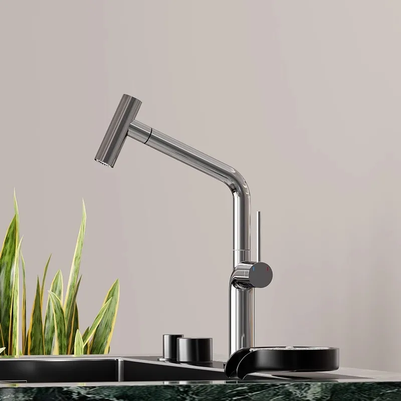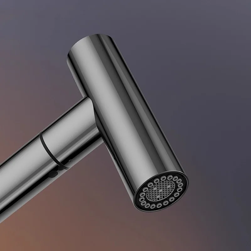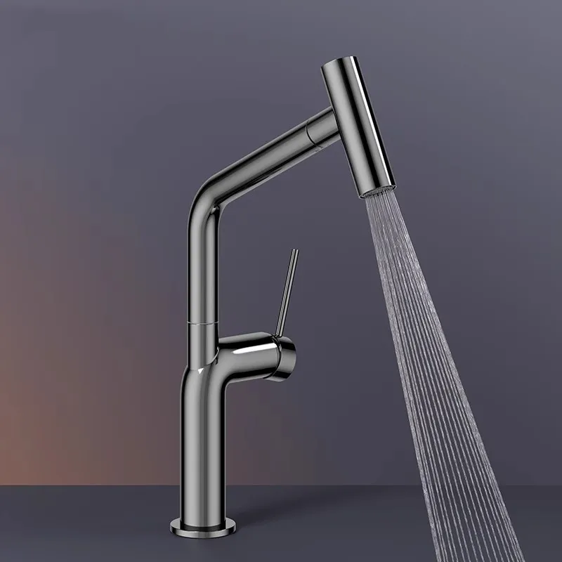 This exceptional kitchen faucet is more than just a tap; it's an upgrade to your entire kitchen experience. The pull-out spray function dramatically simplifies dishwashing, vegetable rinsing, and even filling large pots and pans, saving you time and effort. Its elegant design, with the polished chrome and understated gray details, adds a touch of modern luxury to your kitchen, elevating its overall aesthetic appeal. The robust brass construction guarantees longevity, offering peace of mind that this faucet will withstand the rigors of daily use. Whether you are renovating your kitchen or simply looking to replace an outdated fixture, this pull-out mixer tap offers the perfect blend of cutting-edge functionality, superior quality, and timeless design.