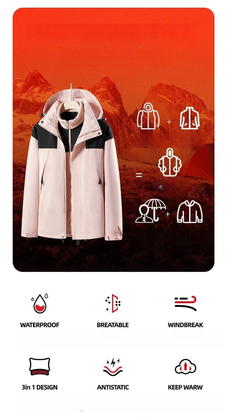 Discover the perfect blend of style, comfort, and protection with our New Three-in-One Outdoor Jackets. Designed for both men and women, this versatile jacket is ideal for camping, skiing, and various outdoor activities. Its innovative three-in-one design offers unmatched adaptability to changing weather conditions while maintaining a sleek, simple fashion look.