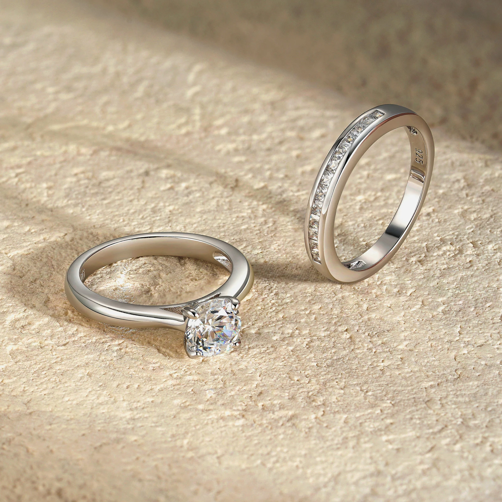 - Features a dazzling solitaire round cubic zirconia, expertly cut to emulate the unparalleled fire and sparkle of a natural diamond.