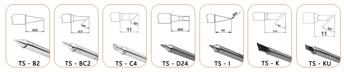– Wide Range of Tip Options: Available with various tip configurations (e.g., 5 Tips, 4 Tips, 7 tips, 6 Tips, TS-B2 and TS-KU, TS-B2 and TS-D24, TS-K, TS-BC2 and TS-I, TS-KU, TS-D24, 3 Tips, TS-BC2 and TS-K, TS-B2, TS-I, TS-C4, TS-BC2) to suit diverse soldering applications.