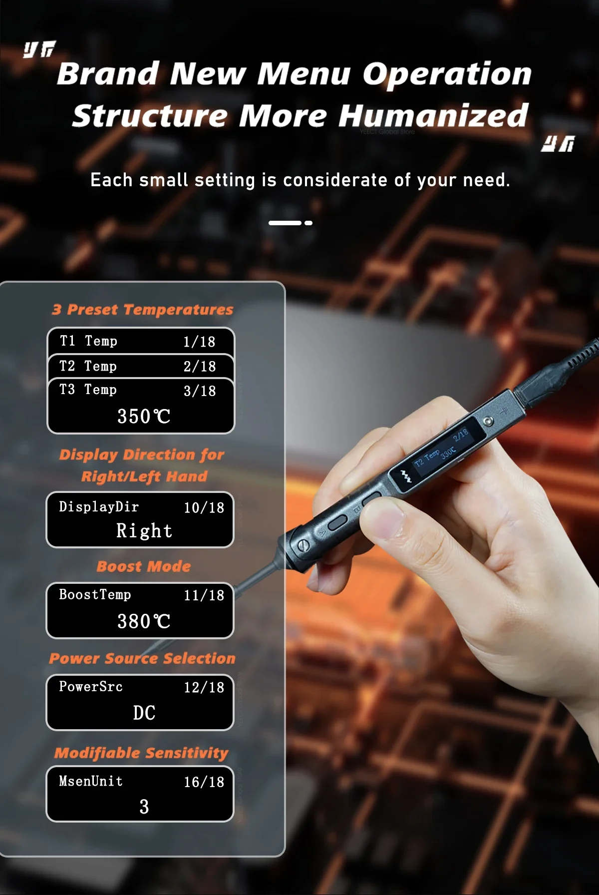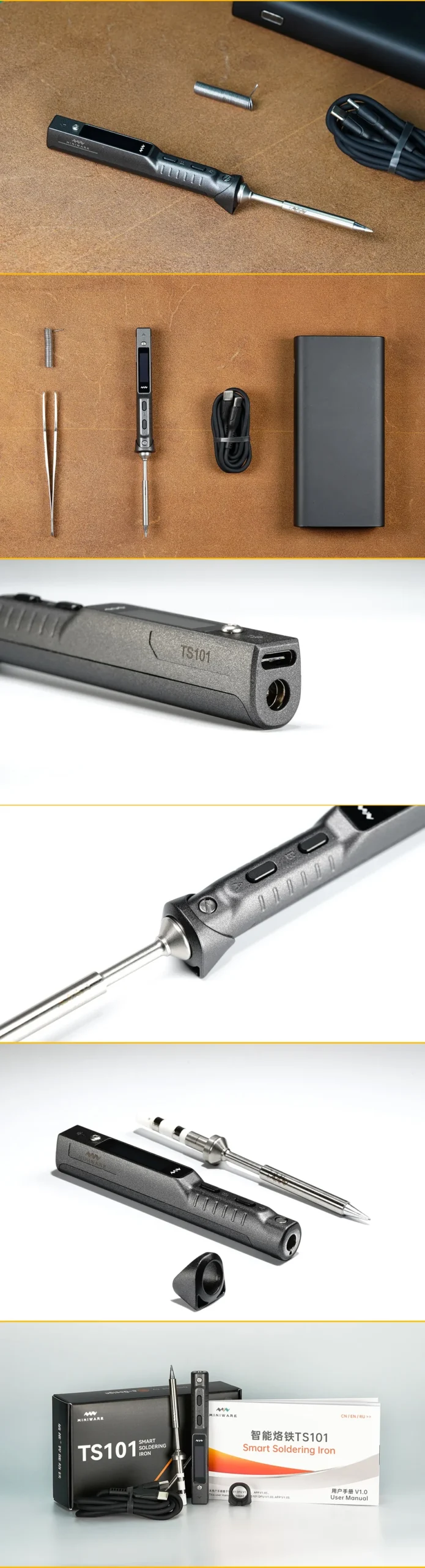 Upgrade your soldering with the Original TS101. 65W power, programmable thermostat, LCD display. Includes PD plug and a variety of tip sets for ultimate versatility. Fast heating, precise control.