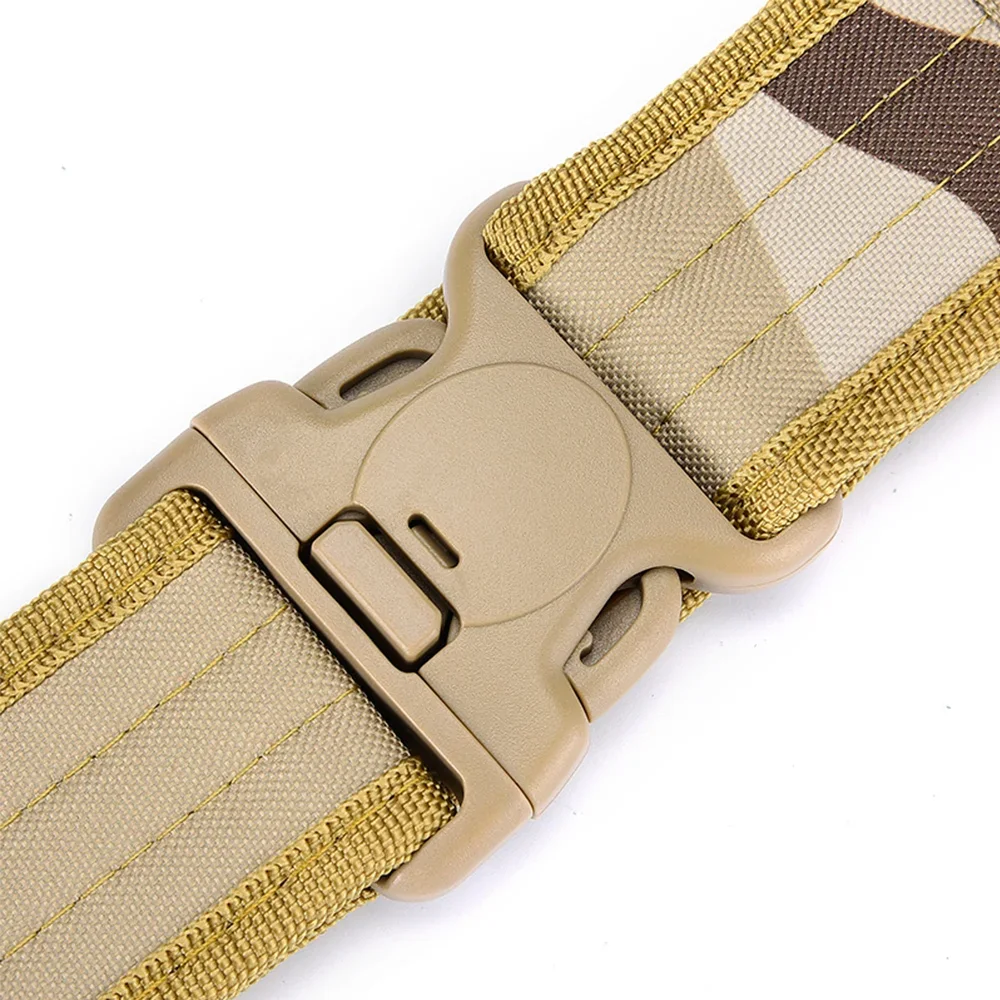 Experience unmatched reliability and style with the Outdoor Camouflage Tactical Belt, expertly crafted for military, outdoor, and sports enthusiasts. This versatile belt combines rugged durability with practical design, making it an essential accessory for mountaineering, work, hiking, or everyday use. Available in multiple colors including khaki, black, army green, desert camouflage, and other unique shades, it adapts seamlessly to your gear and attire.