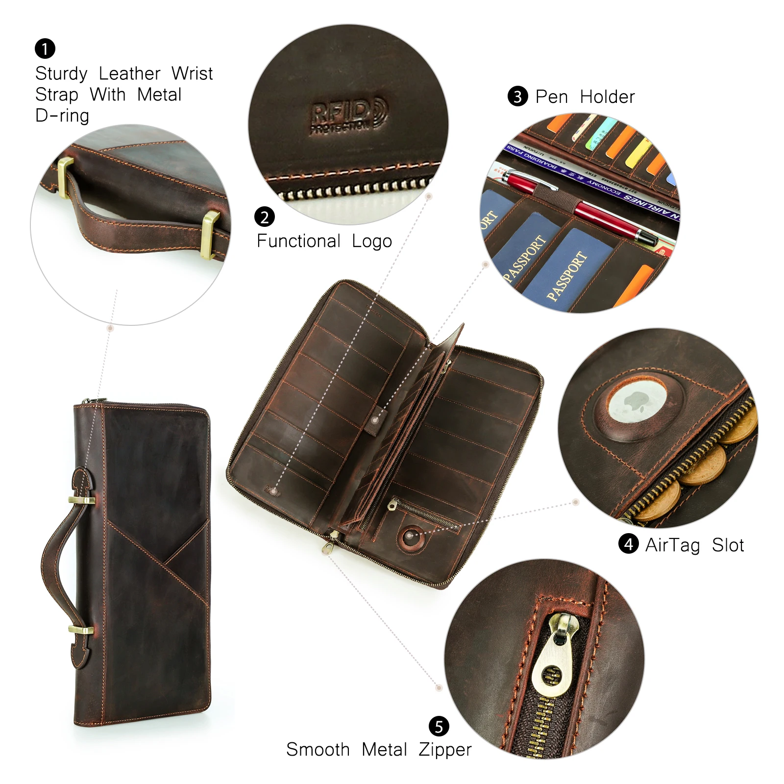 – Anti-theft and anti-lost design elements including secure zipper closures and compact clutch size for easy handling