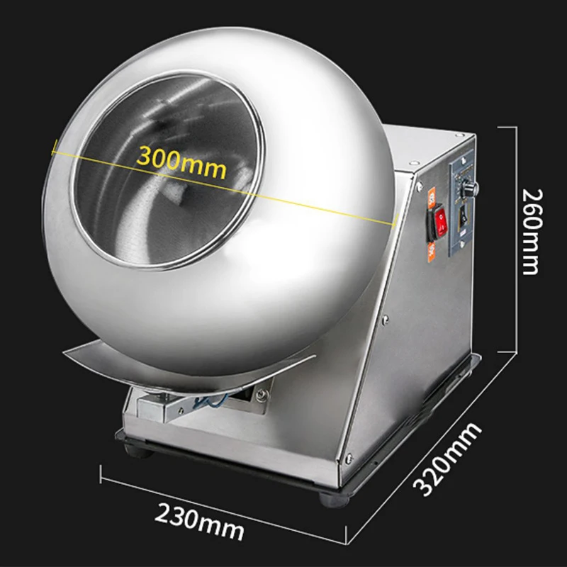 This advanced coating machine revolutionizes the way you prepare your confectionery and pharmaceutical products. The robust stainless steel drum ensures uniform tumbling, allowing for an even distribution of sugar, chocolate, or film-forming agents. This translates to visually appealing, consistently flavored, and perfectly textured finished goods. For commercial operations, the efficiency and reliability of this machine significantly boost production capacity, reducing manual labor and minimizing waste. Home enthusiasts can achieve professional-quality results, impressing guests with beautifully coated treats. The adjustable speed and temperature controls provide granular command over the coating process, allowing you to experiment with different textures and finishes. This machine is perfect for creating everything from glossy sugared almonds and smooth chocolate-covered pretzels to evenly coated vitamin supplements.