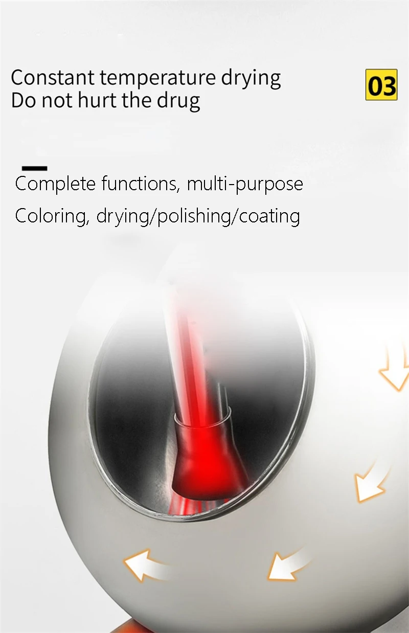 – Powerful electric motor for smooth and consistent rotation, ensuring even coating.