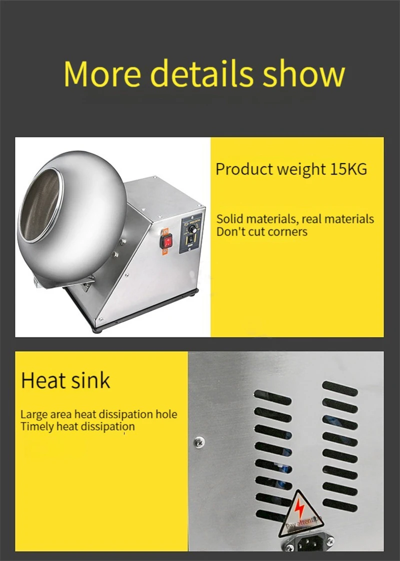 Introducing the ultimate solution for achieving perfectly coated nuts, candies, and pharmaceutical products. This versatile Electric Commercial Stainless Steel Coating Machine is engineered for precision, efficiency, and durability, making it an indispensable asset for both commercial kitchens and specialized manufacturing facilities. Whether you’re aiming for a flawless sugar glaze on peanuts, a rich chocolate shell on truffles, or a smooth film coating on pills, this machine delivers consistent, professional-grade results every time.