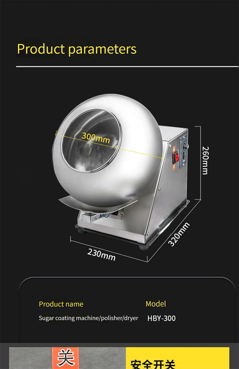Peanut Sugar Coating Machine Electric Commercial Stainless Steel Chocolate Coater Rounding Pills Film Coating Polishing Machine