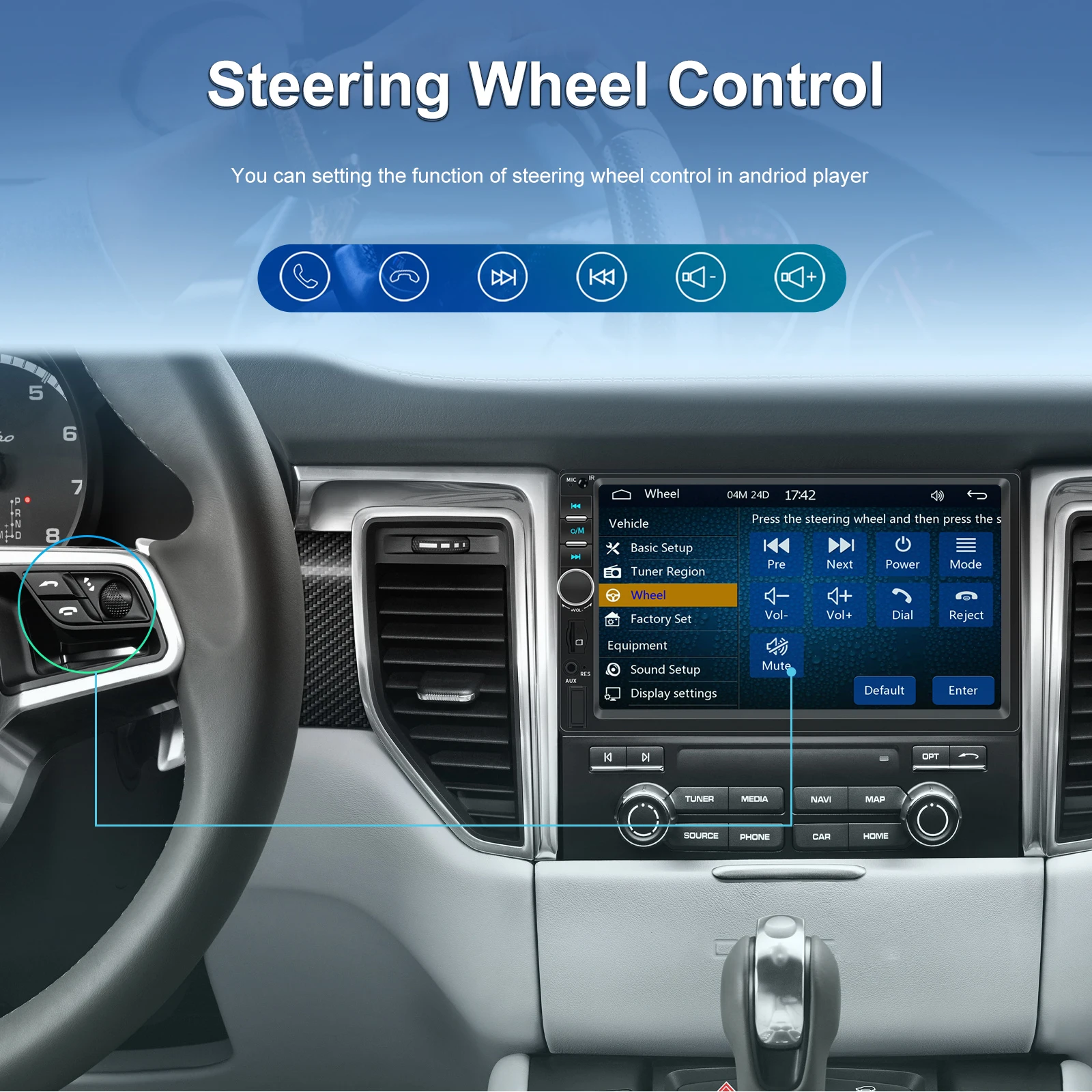 The Podofo MP5 Player enhances safety and convenience by allowing drivers to keep their focus on the road while accessing essential smartphone functions. Bluetooth hands-free capabilities reduce distractions during calls, while Apple CarPlay and Android Auto provide easy navigation and access to favorite apps. The versatile USB and AUX inputs let you enjoy your personal music collection or connect external devices effortlessly. Mirror Link further extends functionality by mirroring your smartphone’s screen, making it simple to access apps and media directly from the stereo interface.