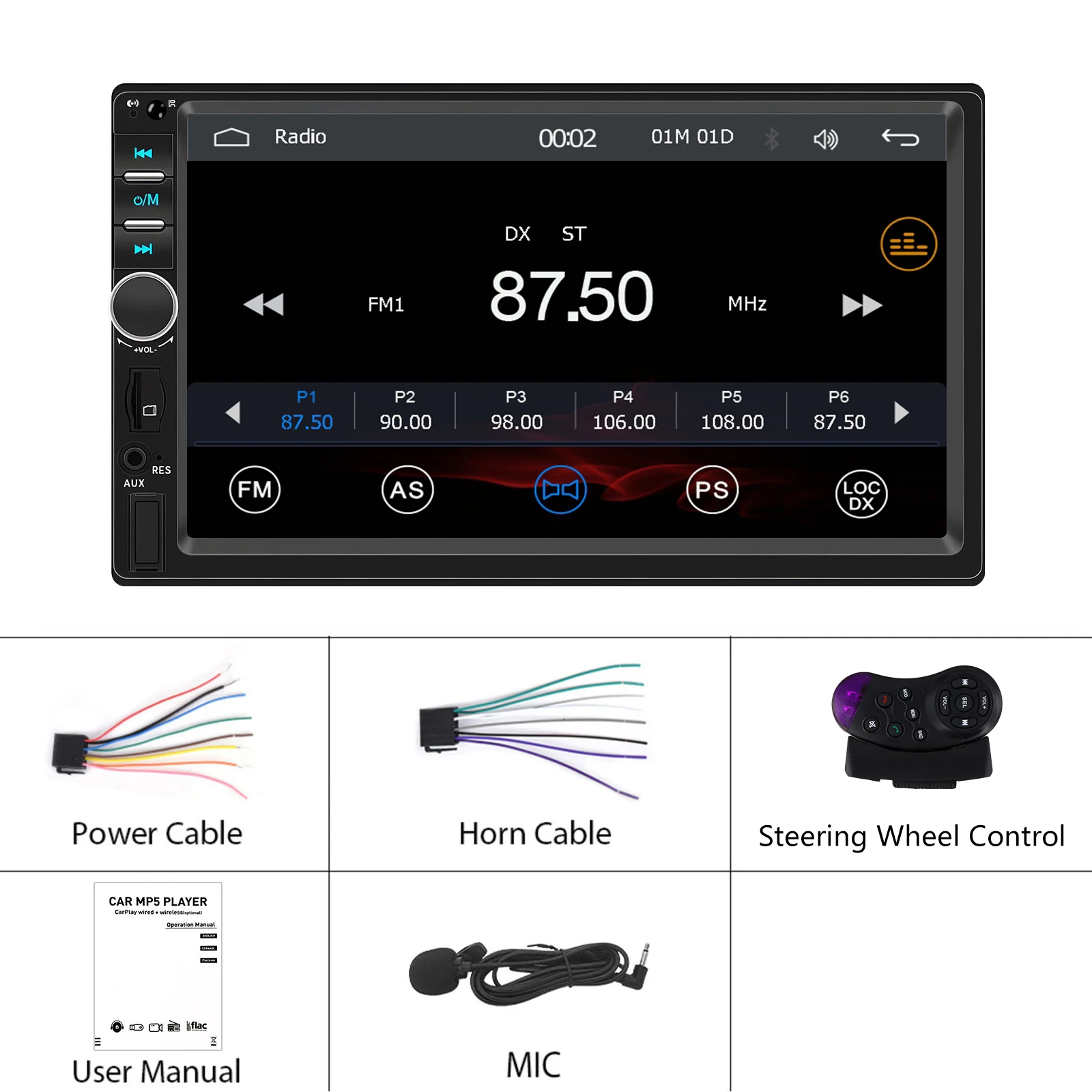 h1 Podofo 2 Din 7'' Carplay MP5 Player Bluetooth Universal Car Stereo Android Auto USB AUX Mirror Link Support USB Multimedia Audio