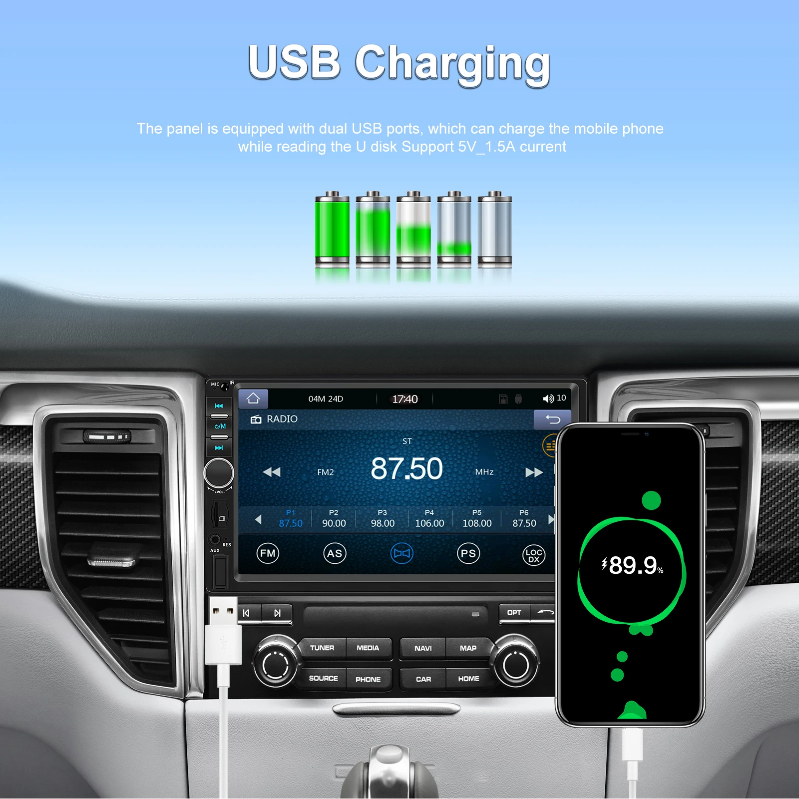 Elevate your driving experience with the Podofo 2 Din 7” Carplay MP5 Player, a versatile and cutting-edge car stereo system designed to integrate seamlessly into your vehicle. This universal car stereo brings together modern technology and user-friendly features, allowing you to enjoy hands-free calls, navigation, music, and more, all through an intuitive touchscreen interface.