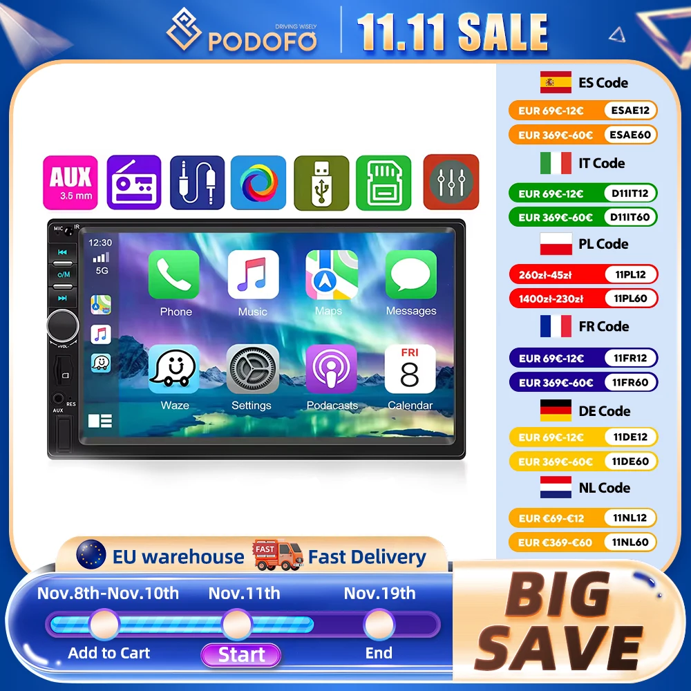 Upgrade your car’s audio and connectivity with the Podofo 2 Din 7” Carplay MP5 Player — the perfect blend of technology and convenience for the modern driver.