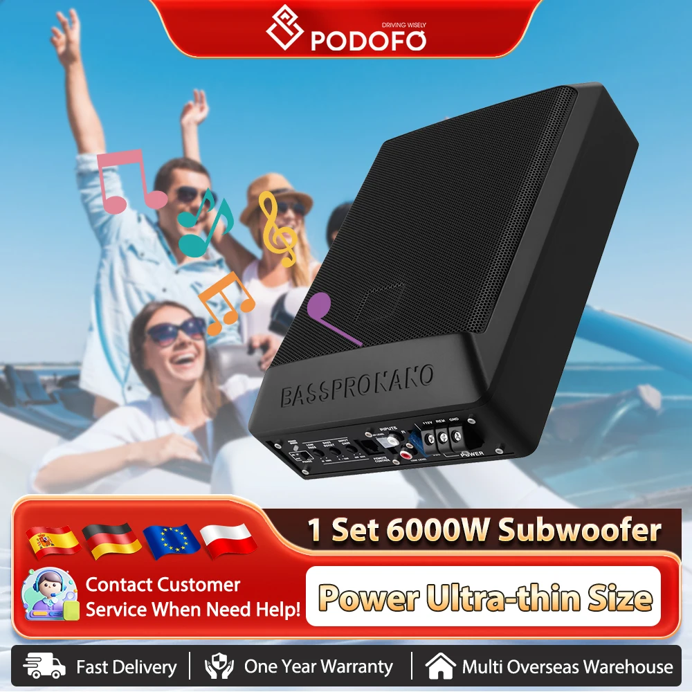 Elevate your in-car audio experience with the Podofo 600 W Active Subwoofer, designed to deliver rich, immersive bass while fitting discreetly under your car seat. This slim, high-performance subwoofer combines advanced amplification technology and a compact form factor, making it ideal for drivers seeking enhanced sound quality without sacrificing space.