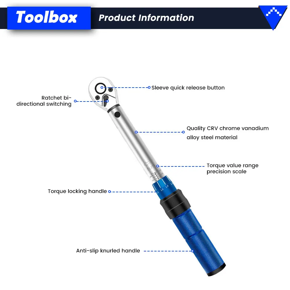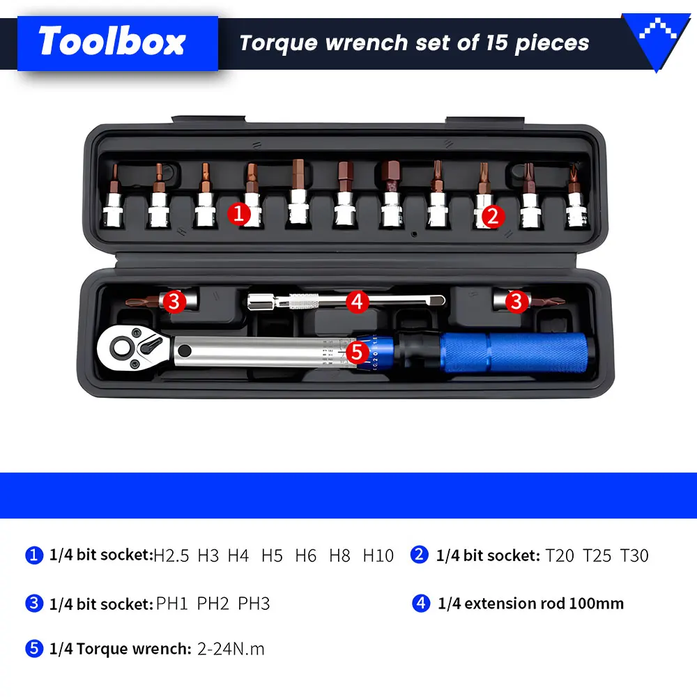 The Podofo High-Precision Torque Wrench Set is an essential tool designed for mechanics, automotive enthusiasts, and bike maintenance professionals seeking accuracy and durability. This torque wrench allows precise torque application ranging from 2 to 24 NM, ensuring every bolt and nut is tightened to the exact specification required for optimal performance and safety.