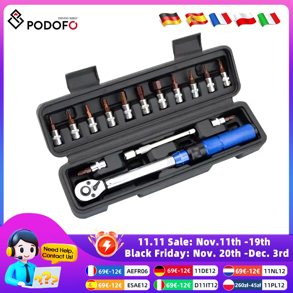 Podofo High-Precision Torque Wrench Set 2-24 NM Adjustment Dual-Direction Ratchet