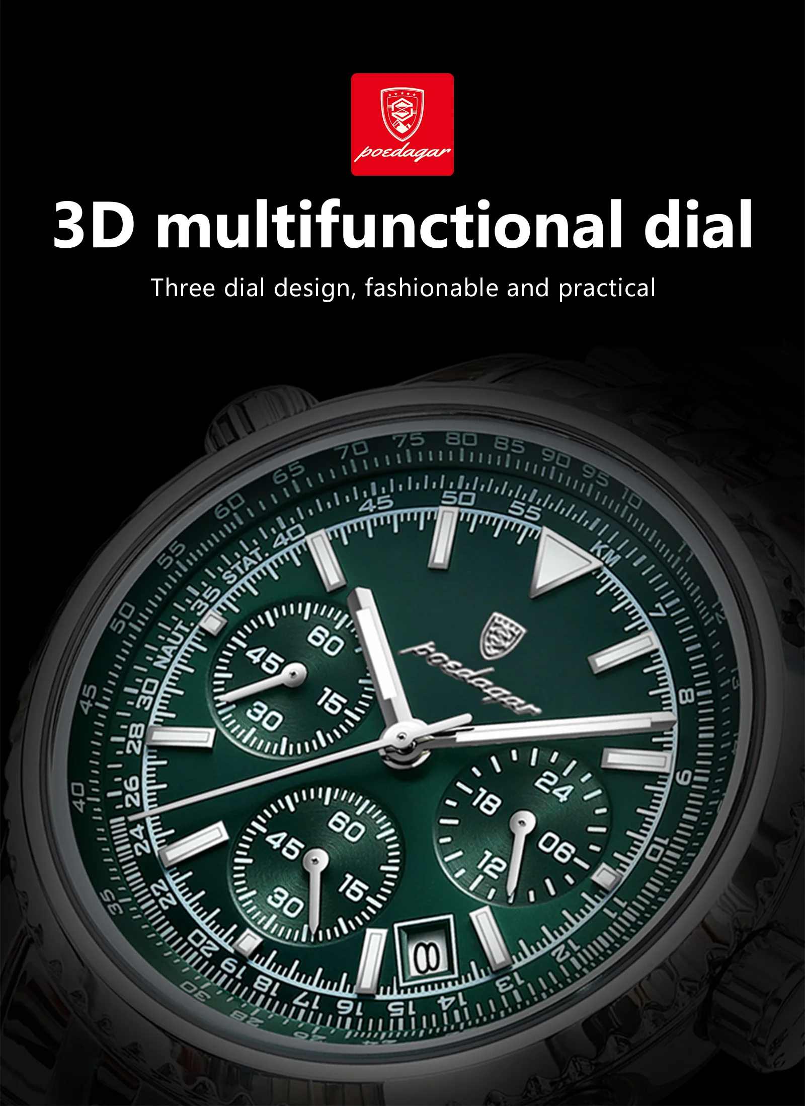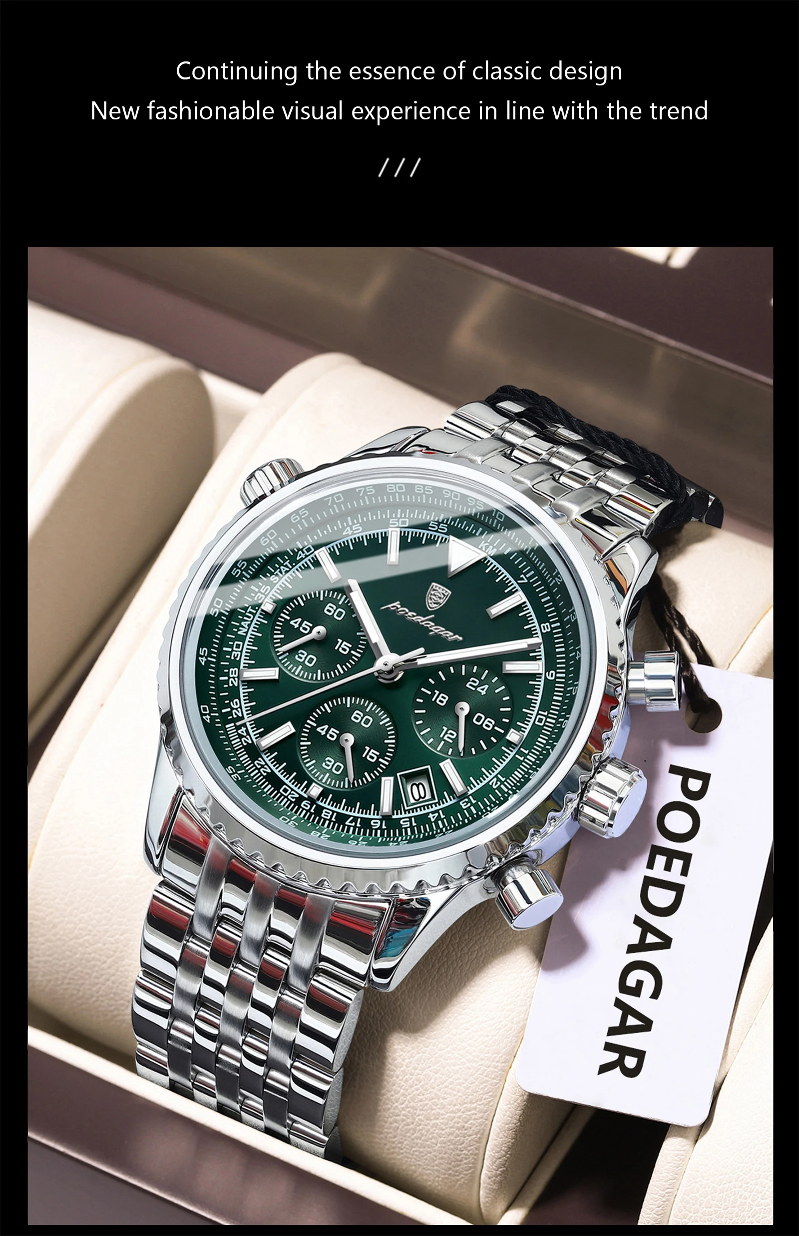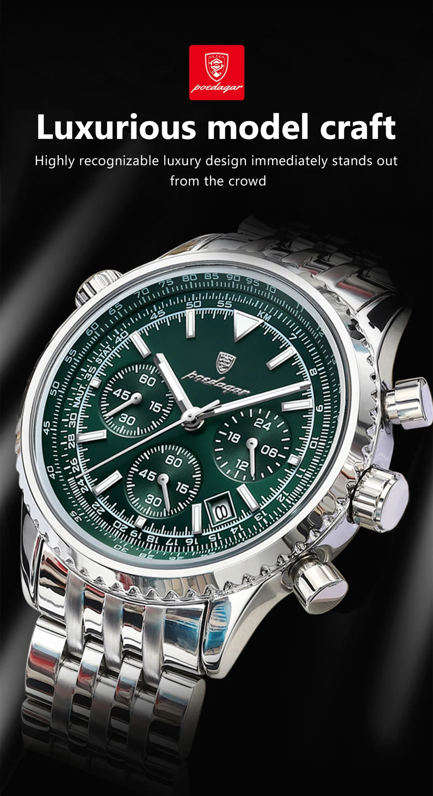 h1 POEDAGAR Business Men's Luxury Chronograph Wristwatch