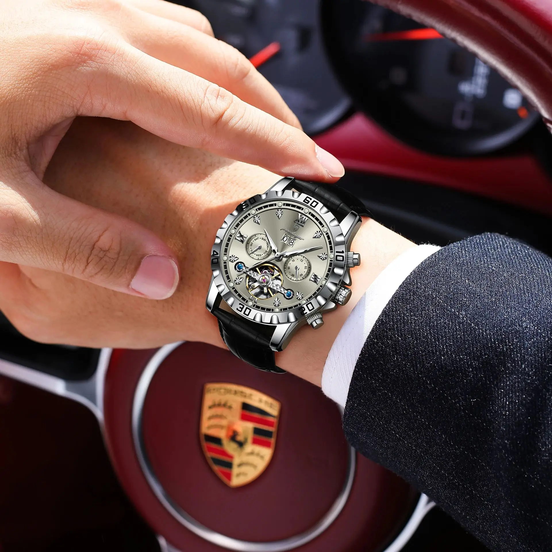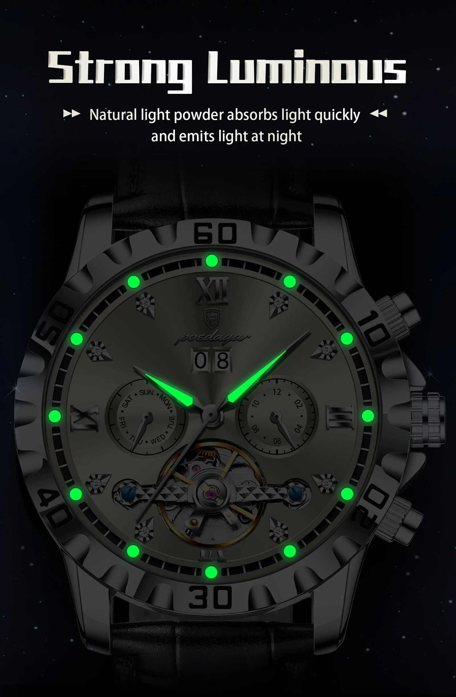 POEDAGAR Luxury Hollow Tourbillon Automatic Mechanical Men’s Watch