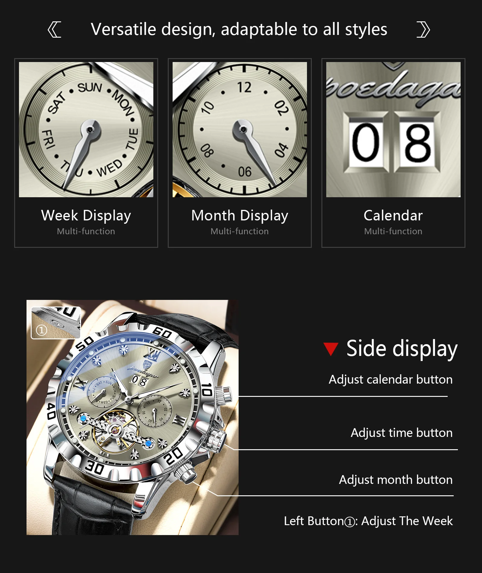 – Premium Leather Strap: Experience superior comfort and a luxurious feel with the genuine leather strap, designed for durability and everyday wear.