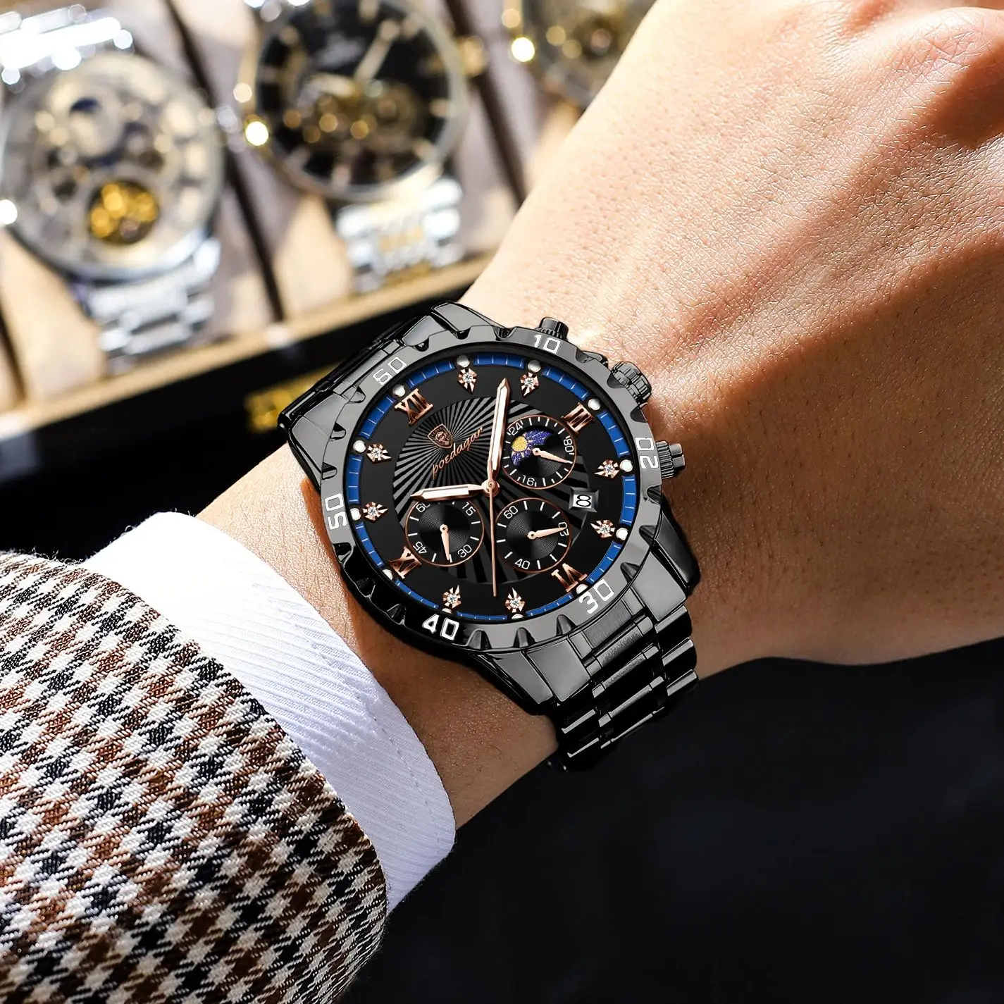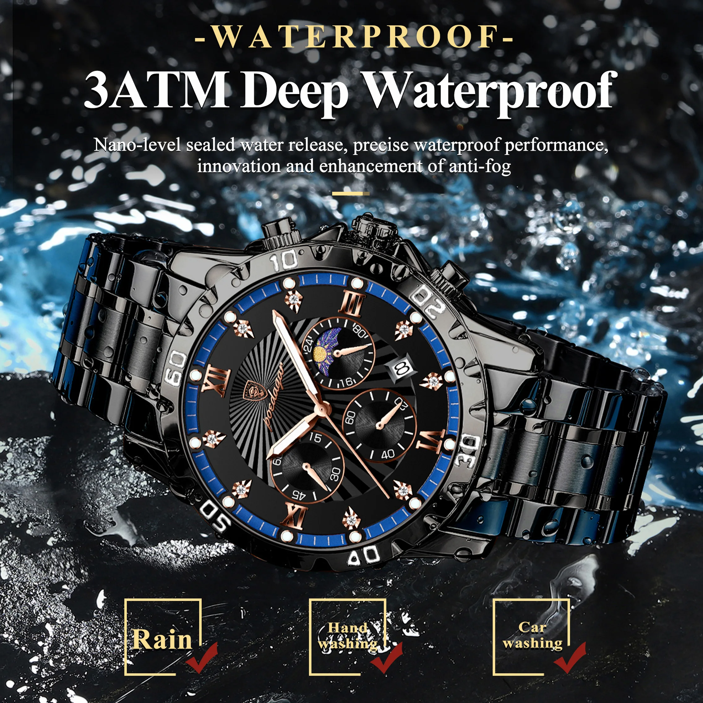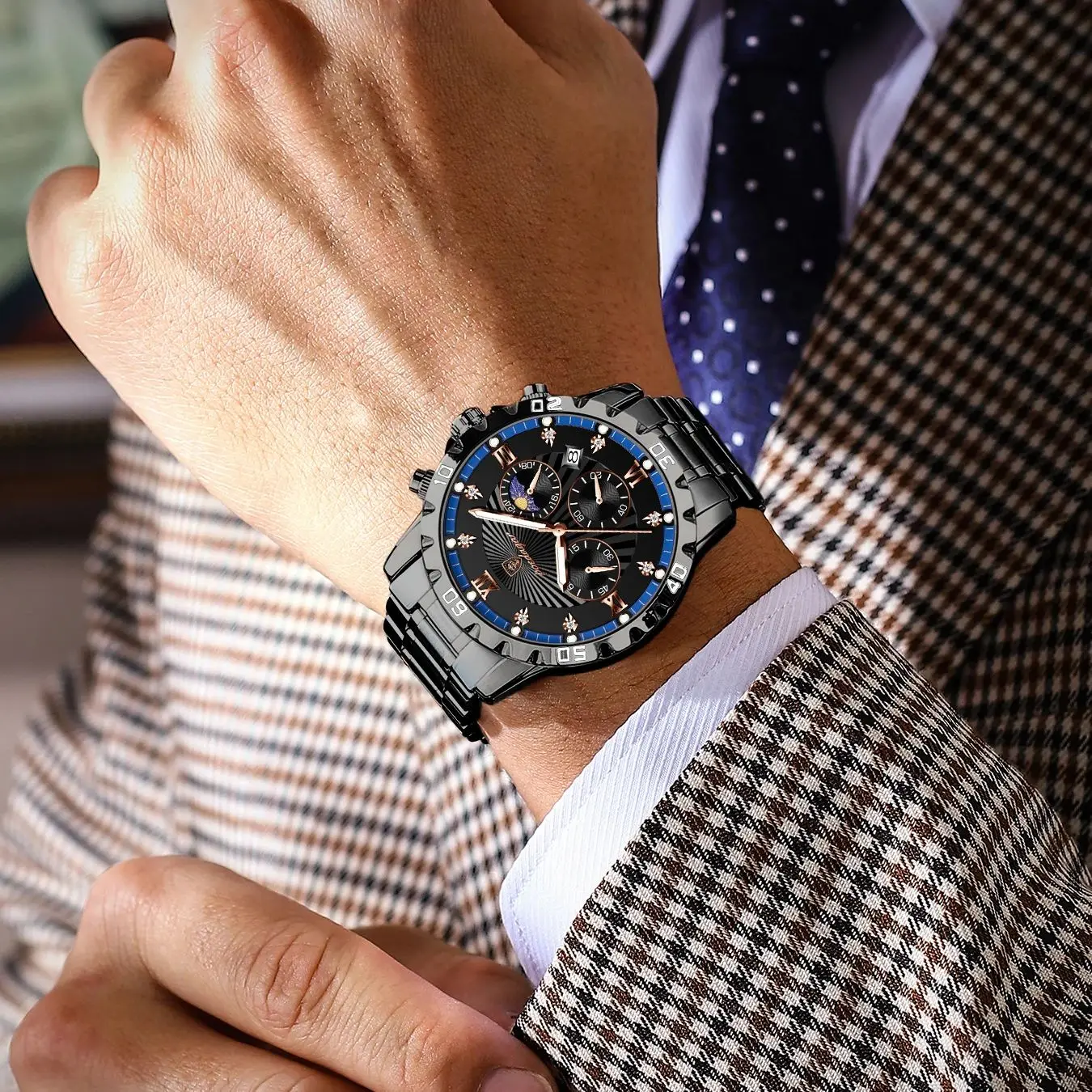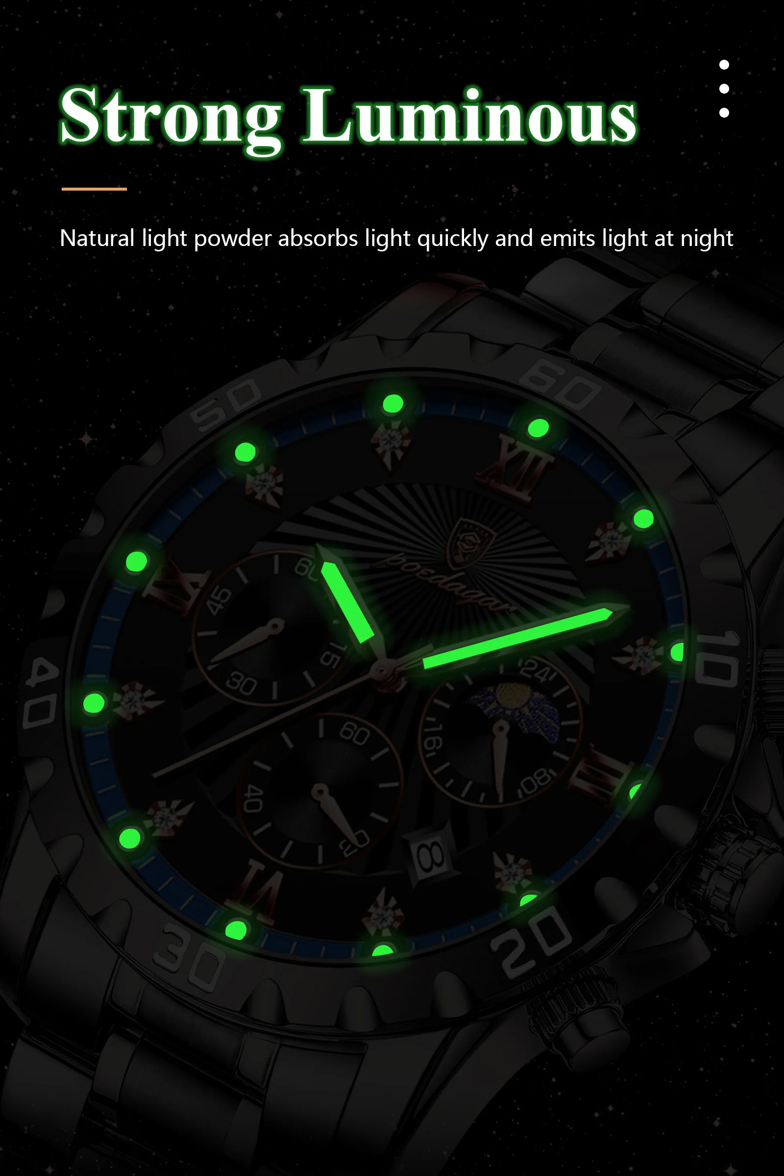 POEDAGAR LUXURY MEN'S STAINLESS STEEL CHRONOGRAPH WRISTWATCH