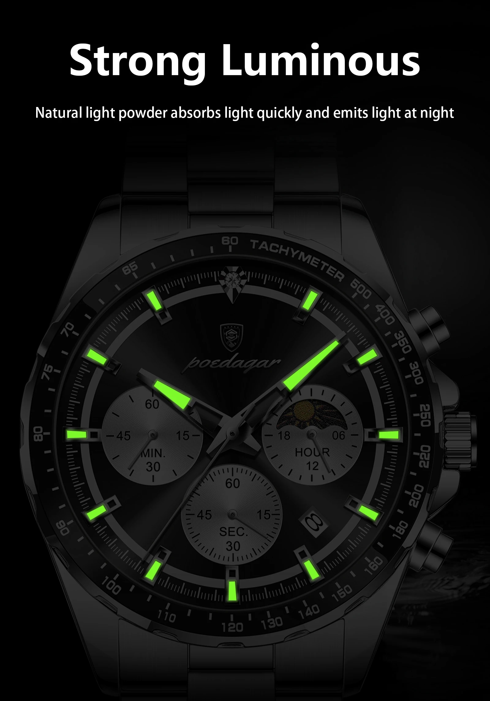 This exceptional POEDAGAR wristwatch boasts a suite of features designed to enhance your daily life and elevate your aesthetic.