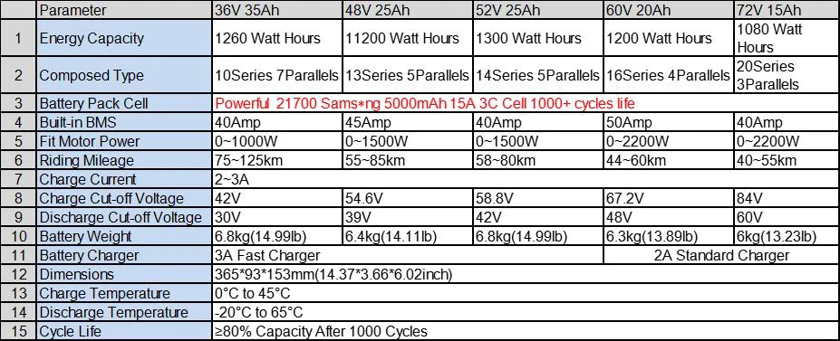 – Wide voltage range options including 36V, 48V, 52V, and 60V to suit various e-bike and escooter models