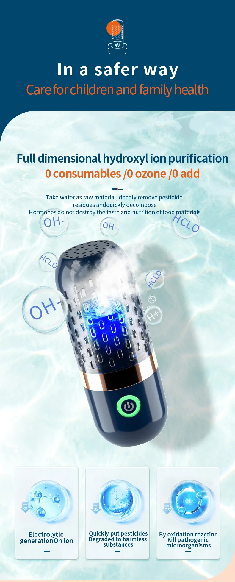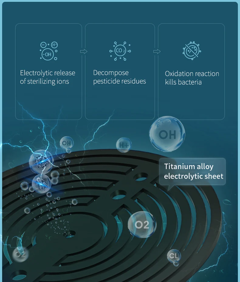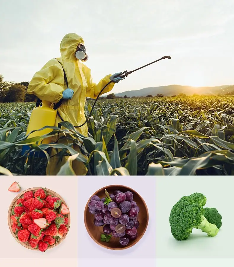 - Powerful sterilization technology to eliminate bacteria and pesticides