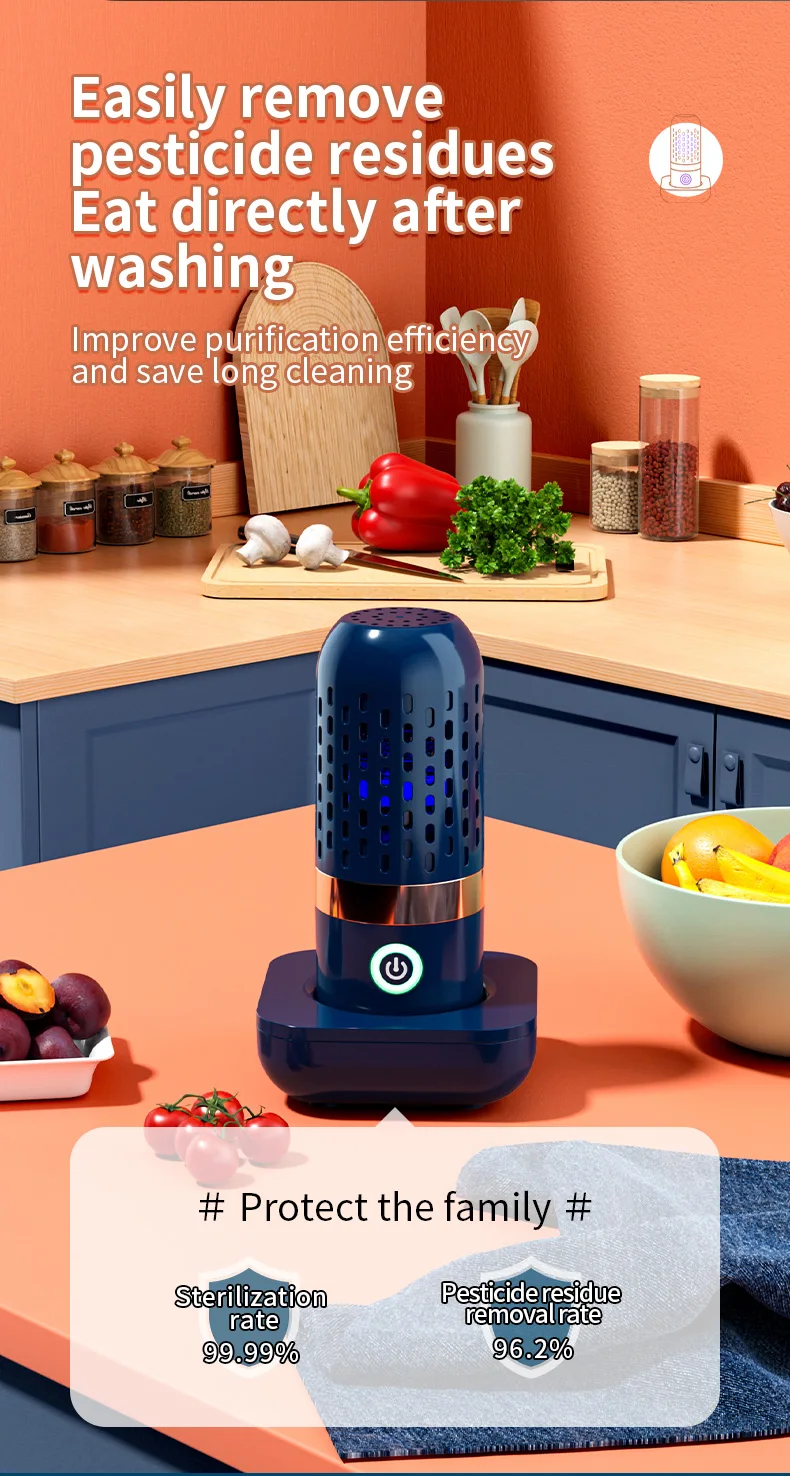 Discover the ultimate solution for maintaining food hygiene with the Portable Multifunctional Vegetable Cleaner. This innovative kitchen gadget is designed to purify fruits and vegetables, ensuring that you and your family enjoy healthier meals. Its compact capsule shape allows for easy storage and portability, making it the ideal companion for home use or travel. Say goodbye to harmful pesticides and contaminants with this efficient food sterilizer.