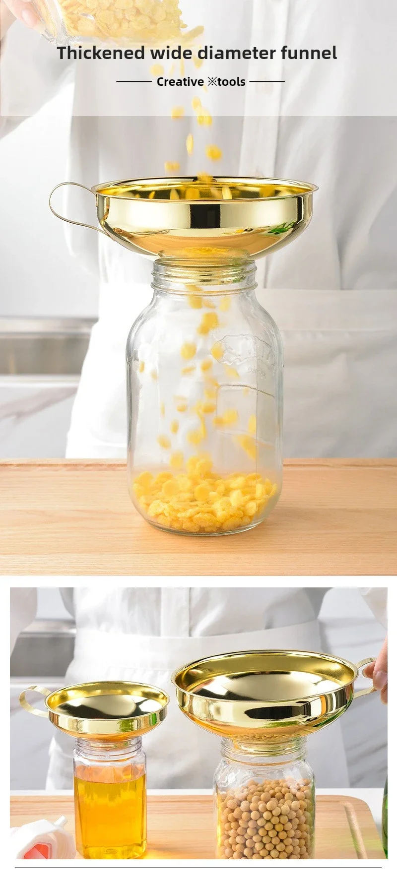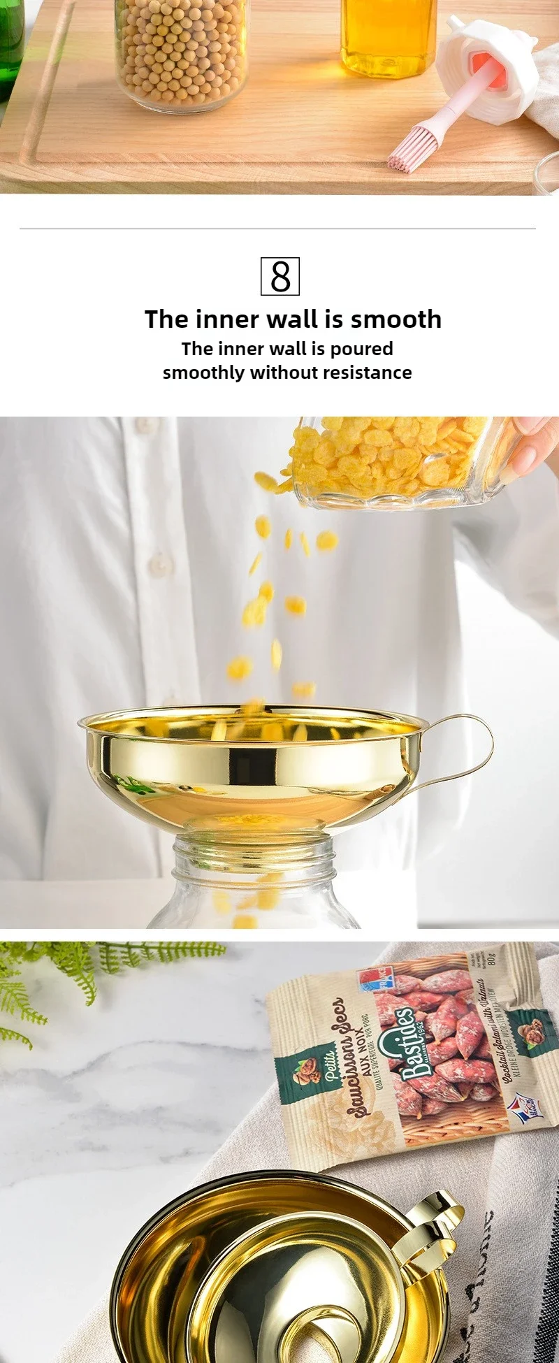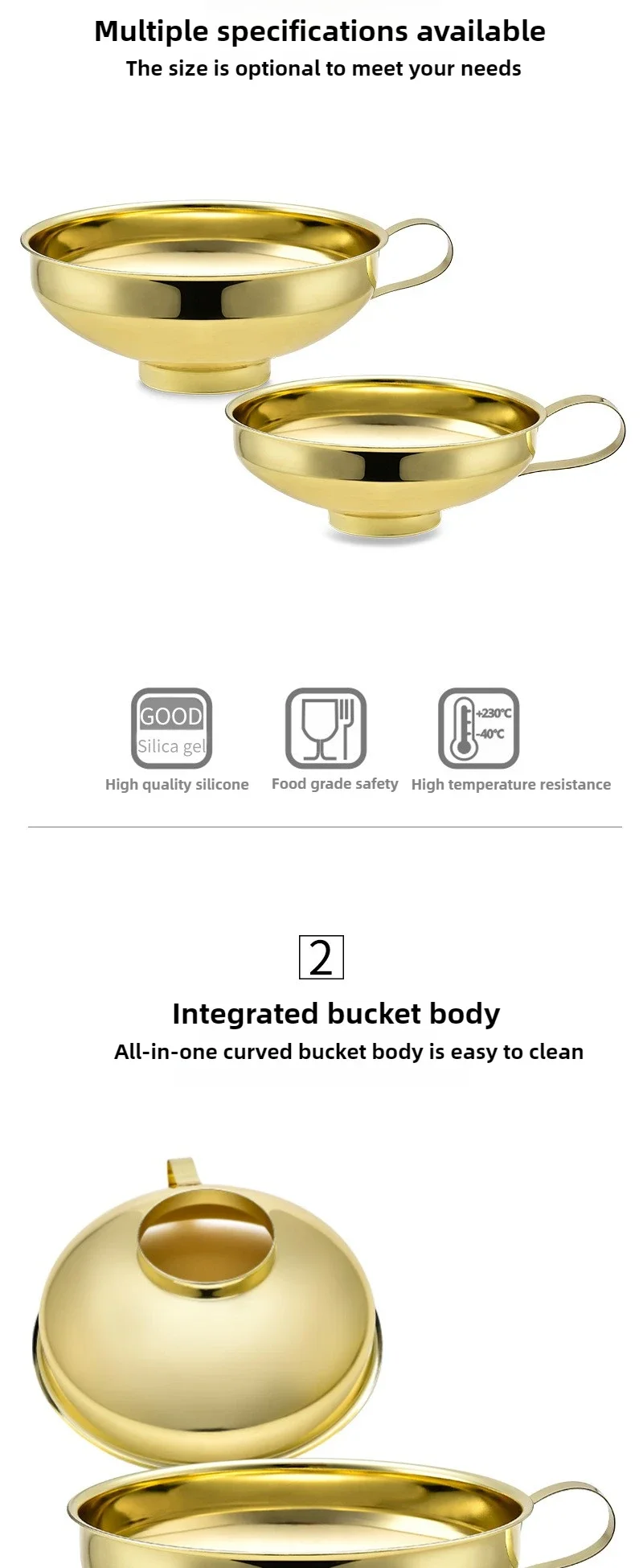 The funnel’s easy-to-clean surface ensures hassle-free maintenance, and its sleek design adds a touch of elegance to your kitchen. Choose the size and color that best fits your needs, or opt for a combination set for maximum versatility.