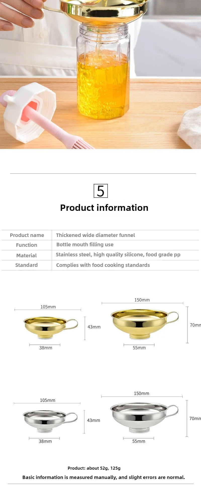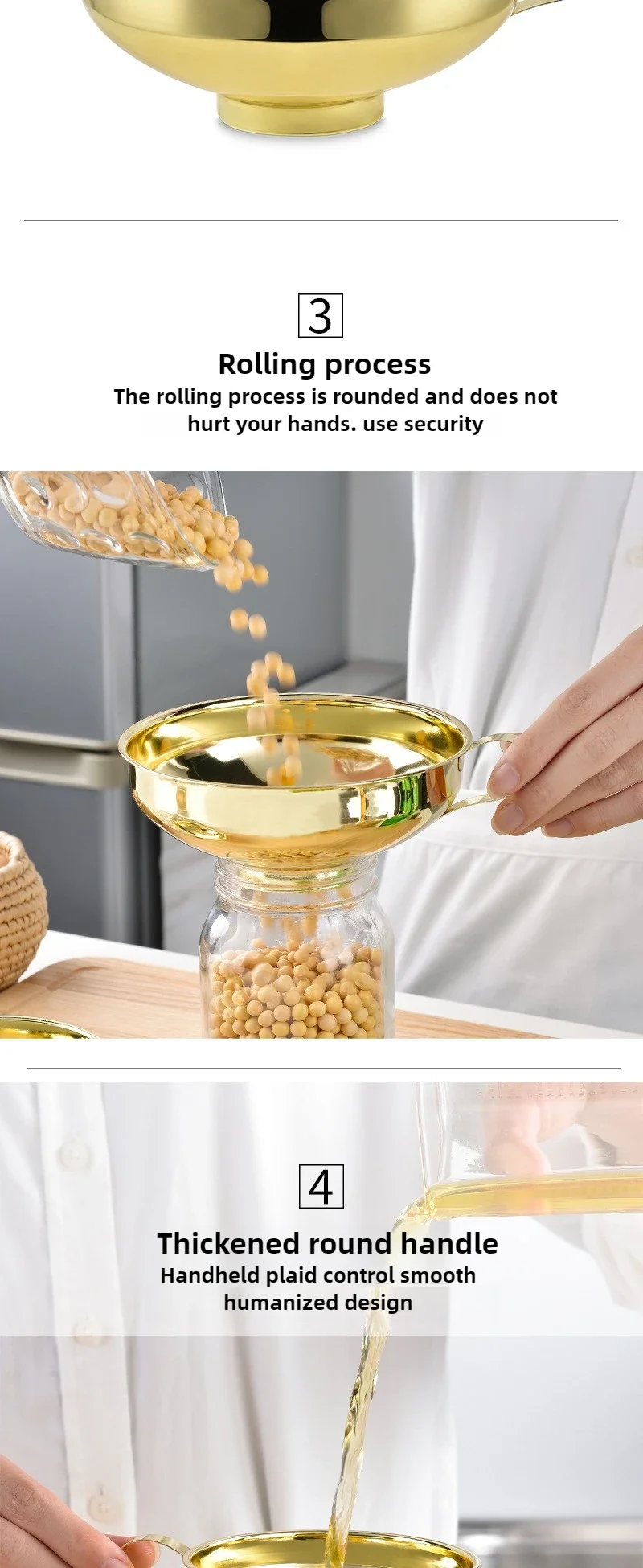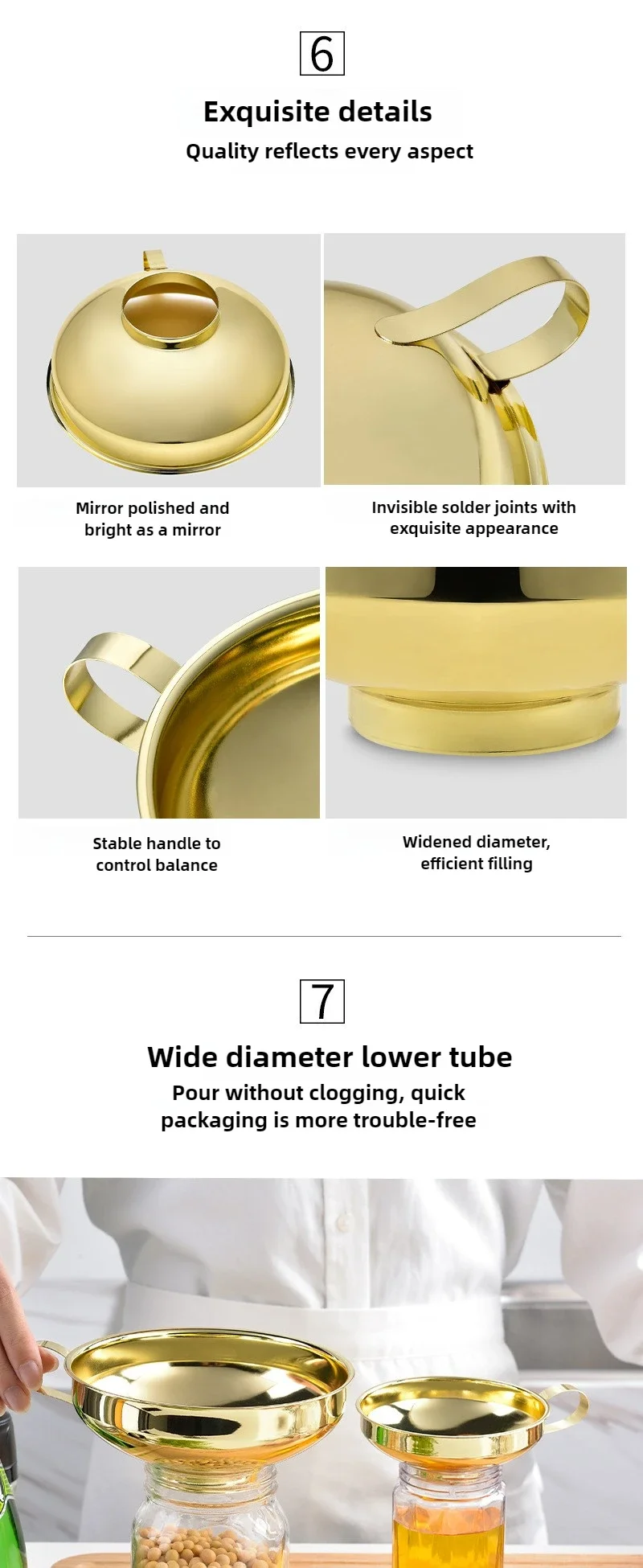 The funnel’s easy-to-clean surface ensures hassle-free maintenance, and its sleek design adds a touch of elegance to your kitchen. Choose the size and color that best fits your needs, or opt for a combination set for maximum versatility.