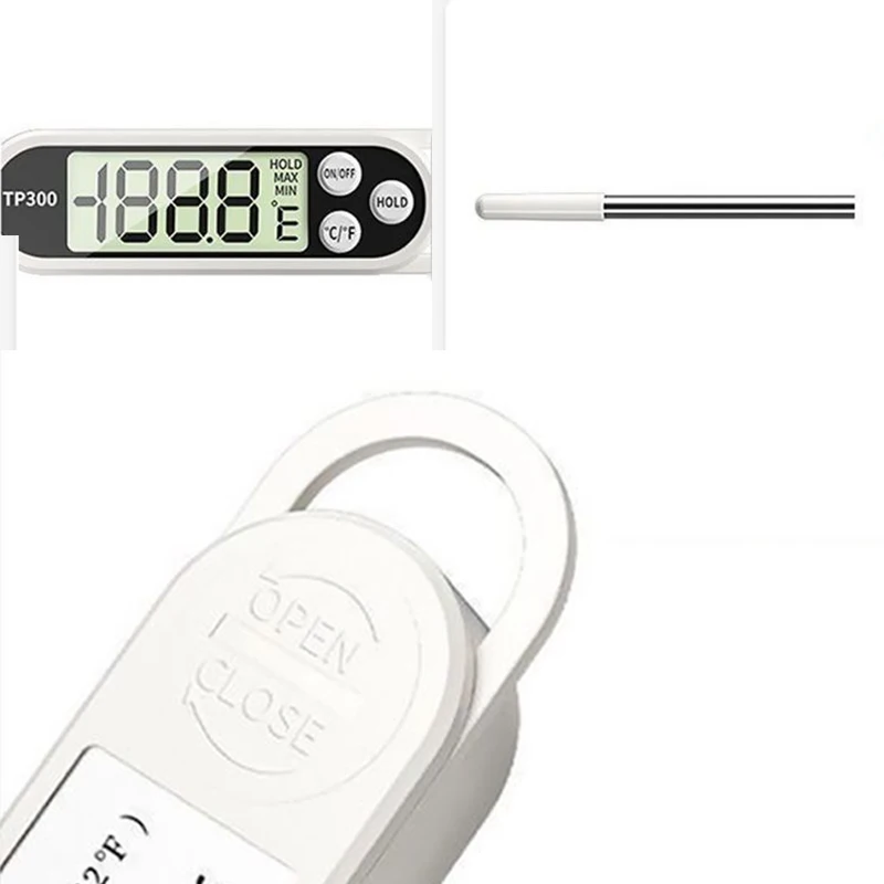 Elevate your cooking and grilling experience with the TP300 Probe Type Digital Food Thermometer. This indispensable kitchen tool ensures perfectly cooked meals every time, from tender roasts to safely prepared poultry. Say goodbye to undercooked or overcooked food and impress your guests with consistent, delicious results.