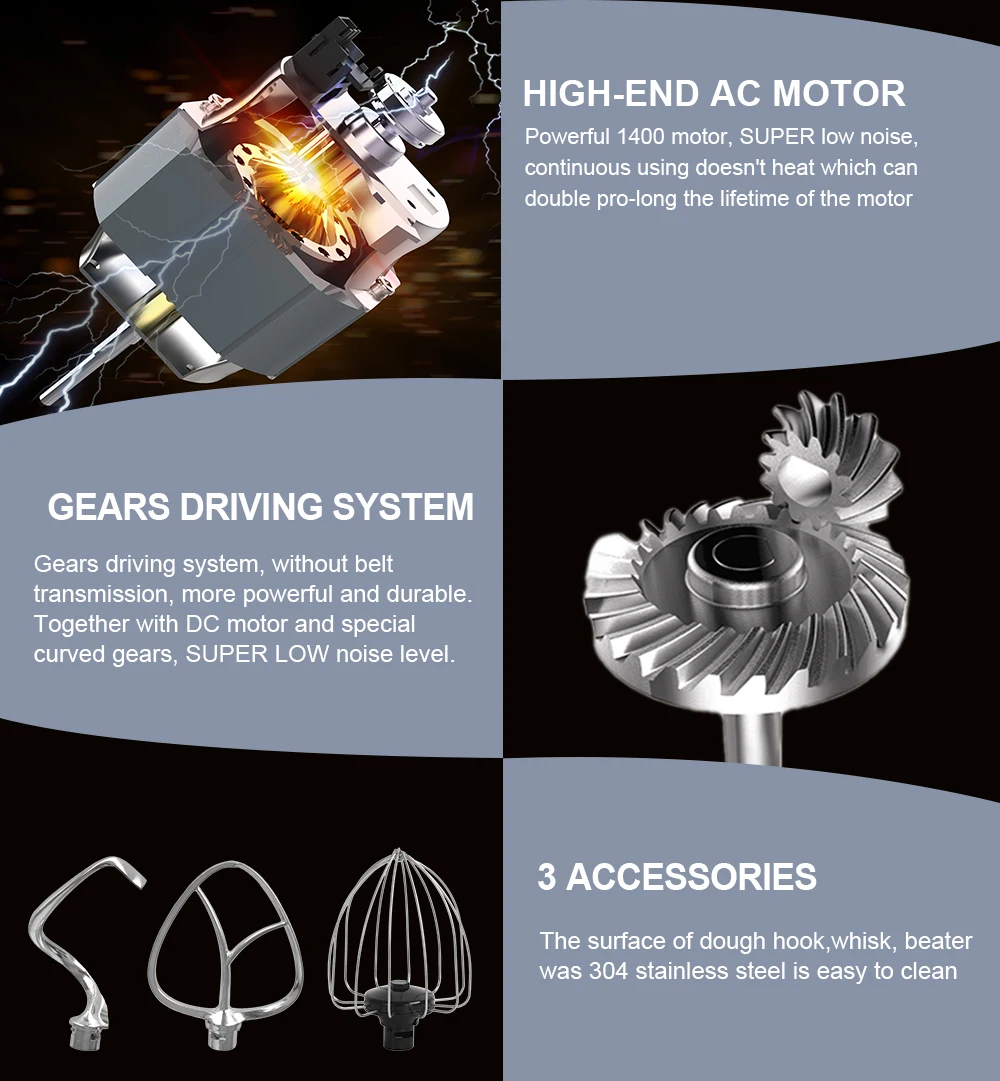 - Powerful 1400W Motor: Effortlessly handles heavy doughs and batters, ensuring consistent results every time.