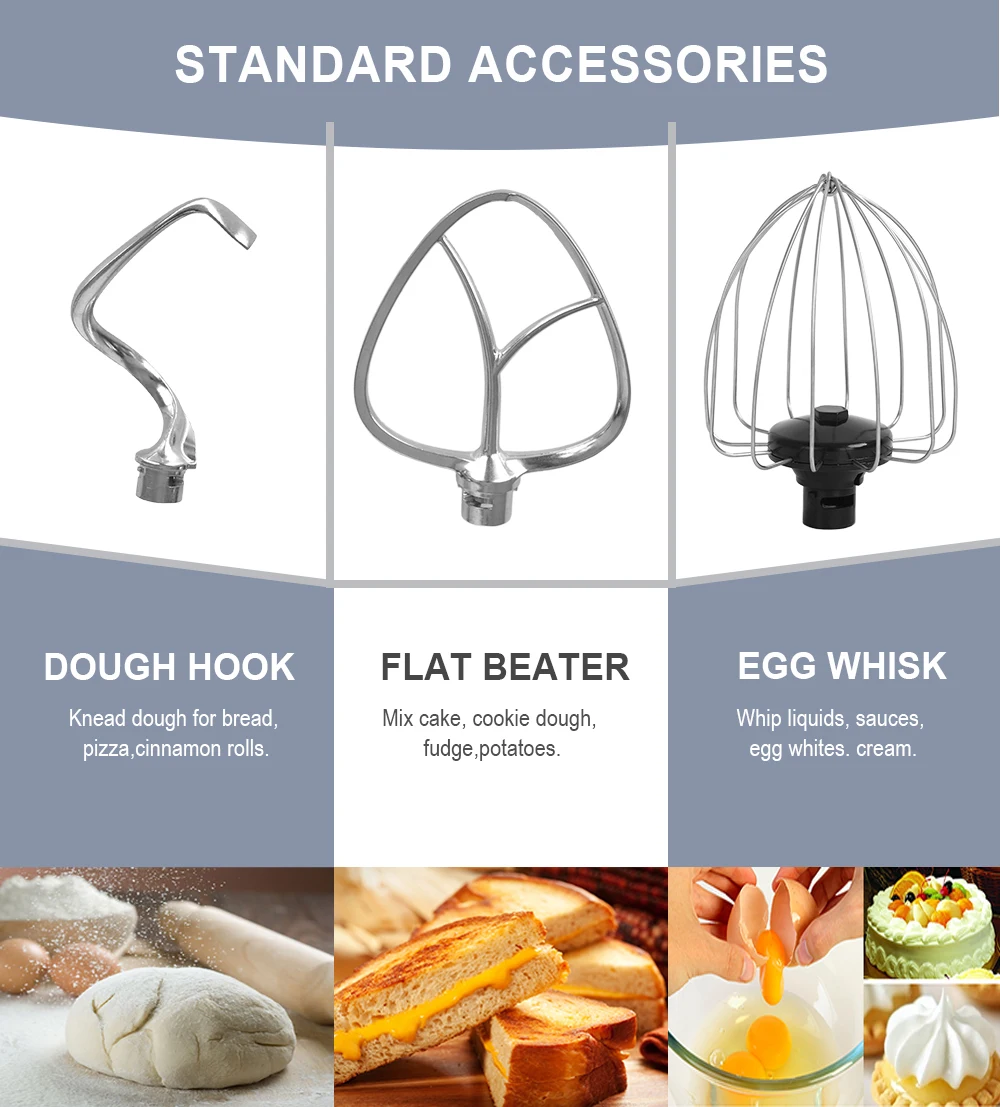 - Includes Essential Attachments: Comes equipped with a durable dough hook, a whisk, and a flat beater for a wide range of culinary tasks.