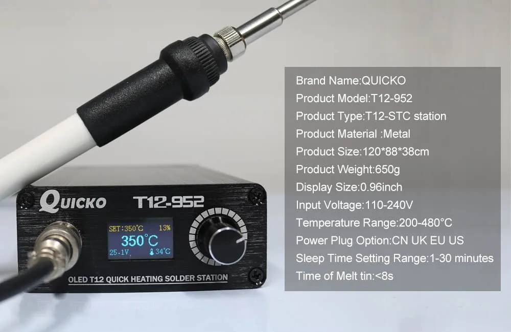 Discover the ultimate tool for professional and hobbyist electronics work with the Quick Heating T12 Soldering Station. The 2020 New Version STC T12 OLED Digital Soldering Iron T12-952 QUICKO is engineered to deliver rapid heating, precise temperature control, and exceptional reliability. Whether you’re assembling circuit boards, repairing electronics, or performing delicate soldering tasks, this advanced soldering station provides unmatched performance and ease of use.