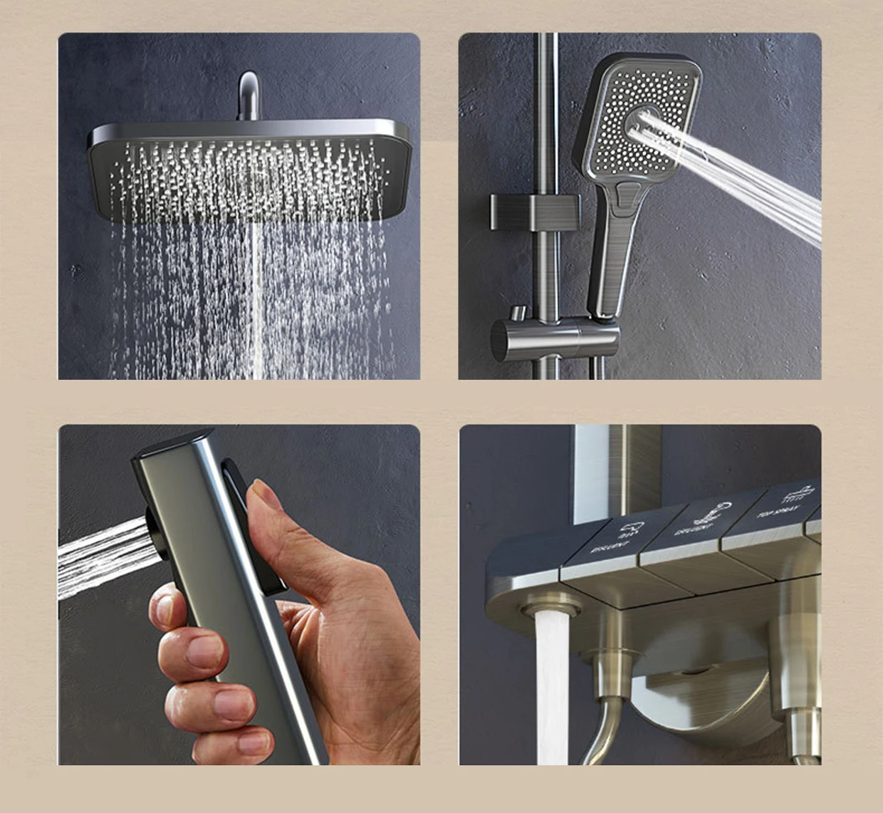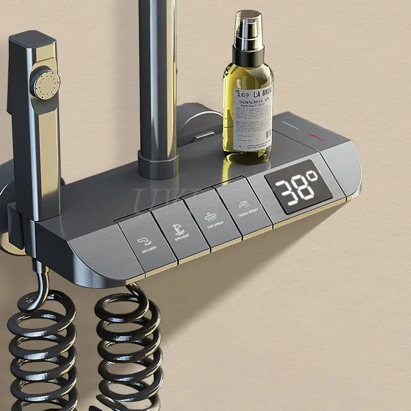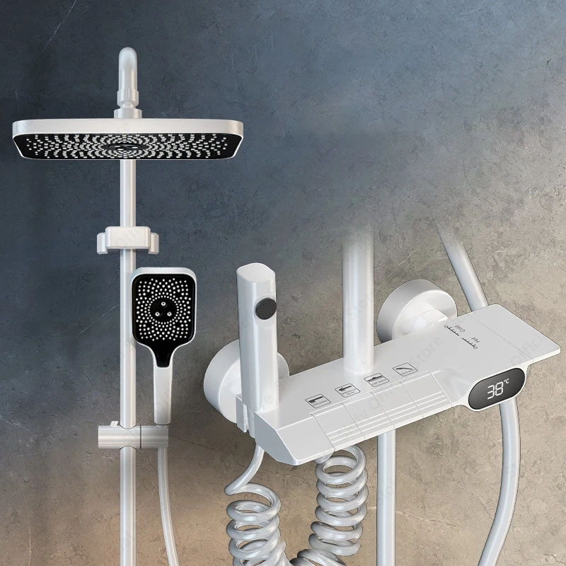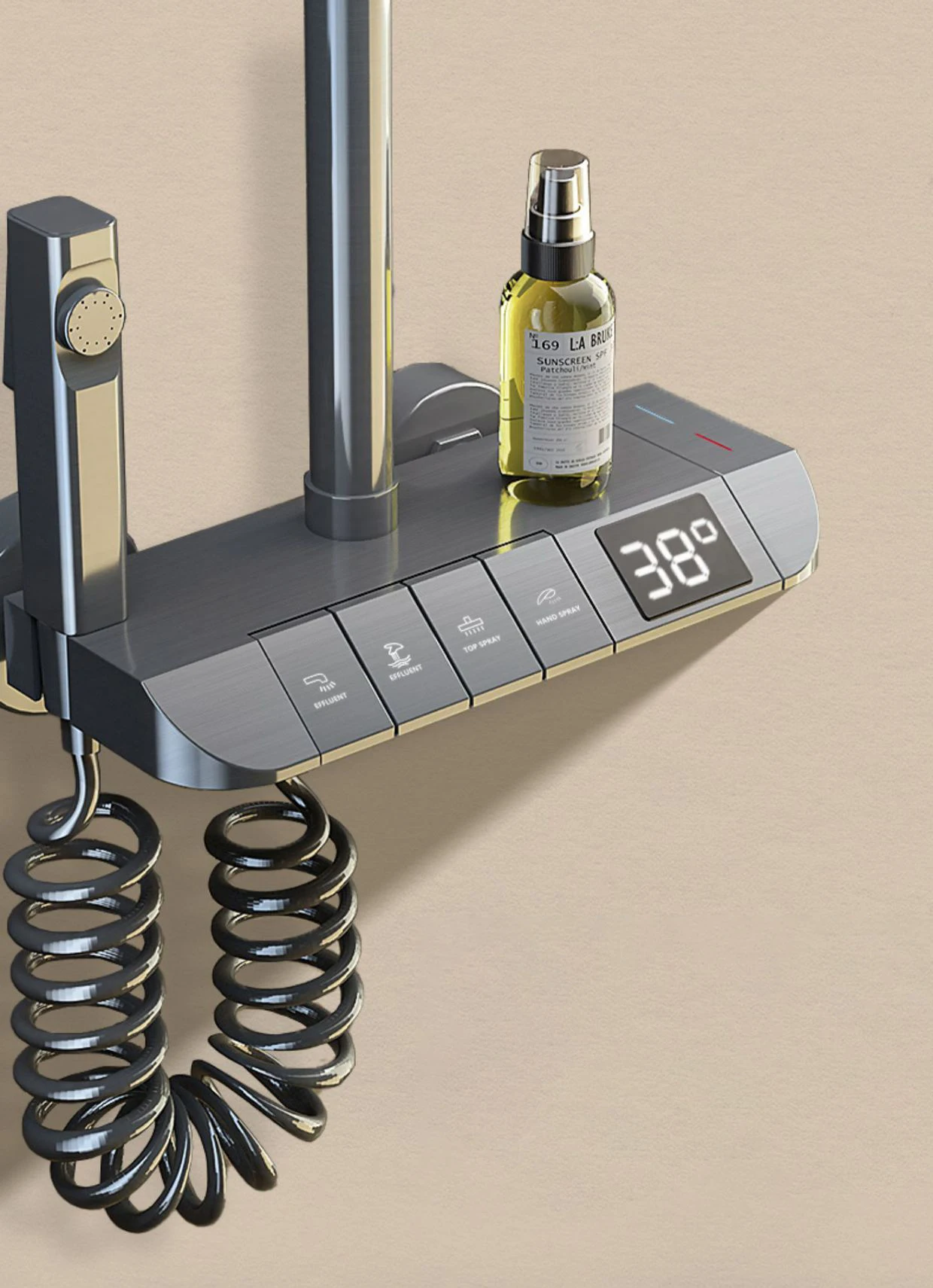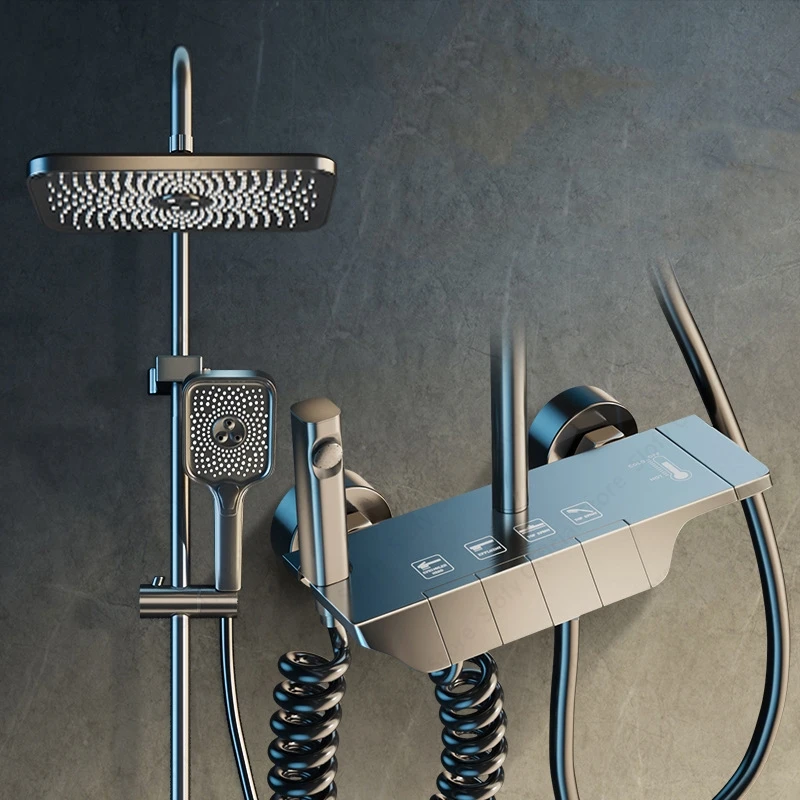 Transform your daily routine into a luxurious spa-like escape with our Rain Shower Set Intelligent Bathroom Faucets. Designed for the modern bathroom, this exquisite collection redefines showering with its blend of advanced technology, elegant aesthetics, and unparalleled comfort. Experience the perfect water temperature, invigorating spray patterns, and a sophisticated design that enhances both functionality and style.