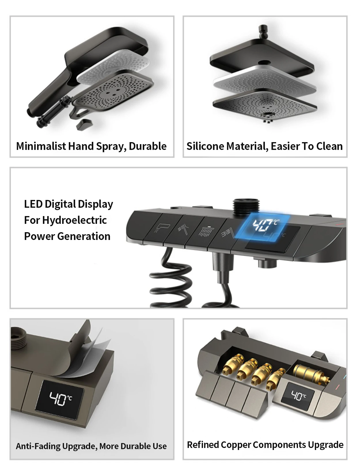 Invest in a bathroom upgrade that combines innovation, luxury, and practicality. Our Rain Shower Set Intelligent Bathroom Faucets are more than just fixtures; they are an invitation to a more refined and enjoyable daily ritual. Experience the perfect blend of technology and tranquility, and transform your bathroom into a personal oasis.