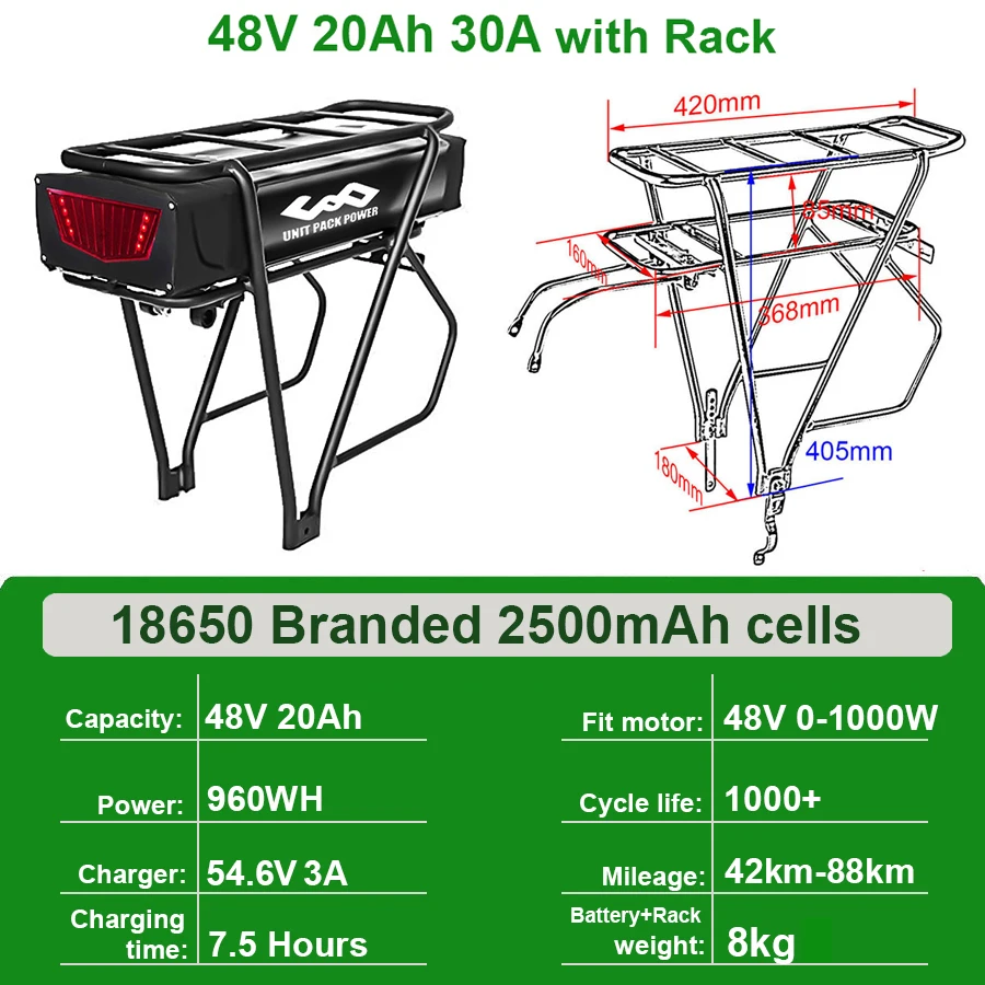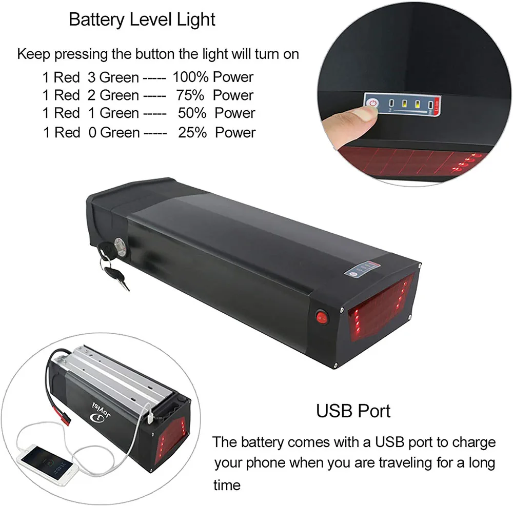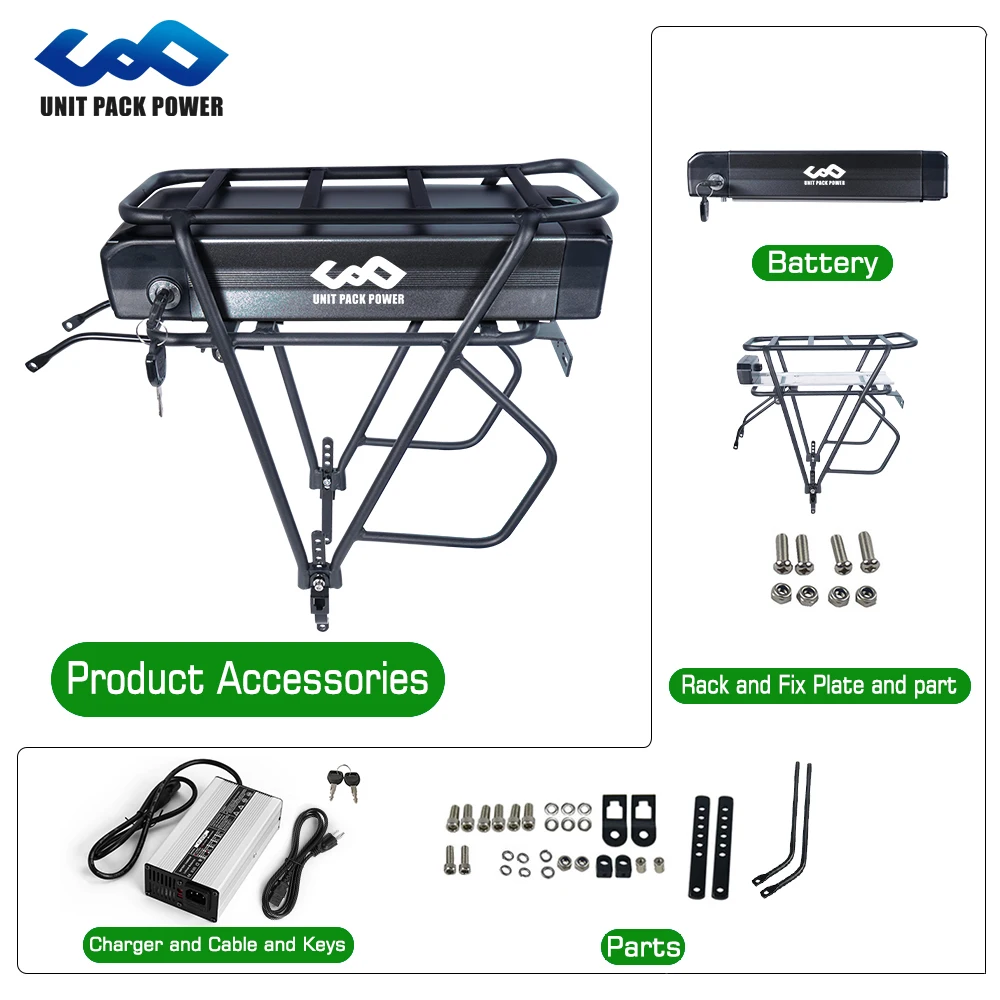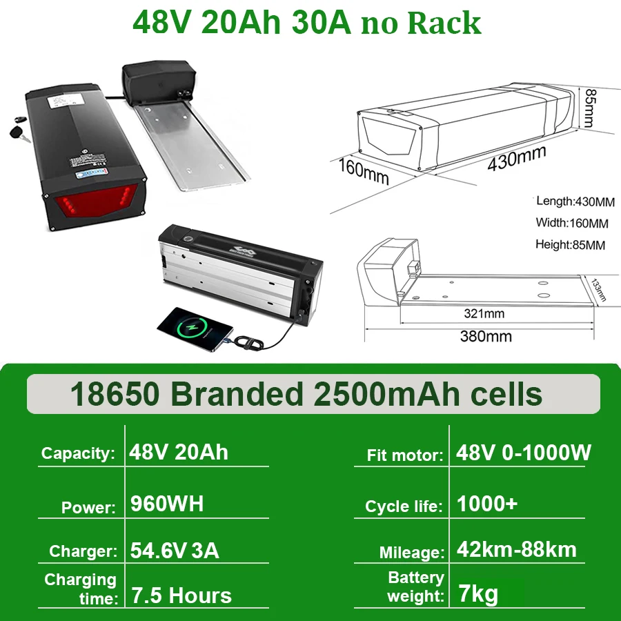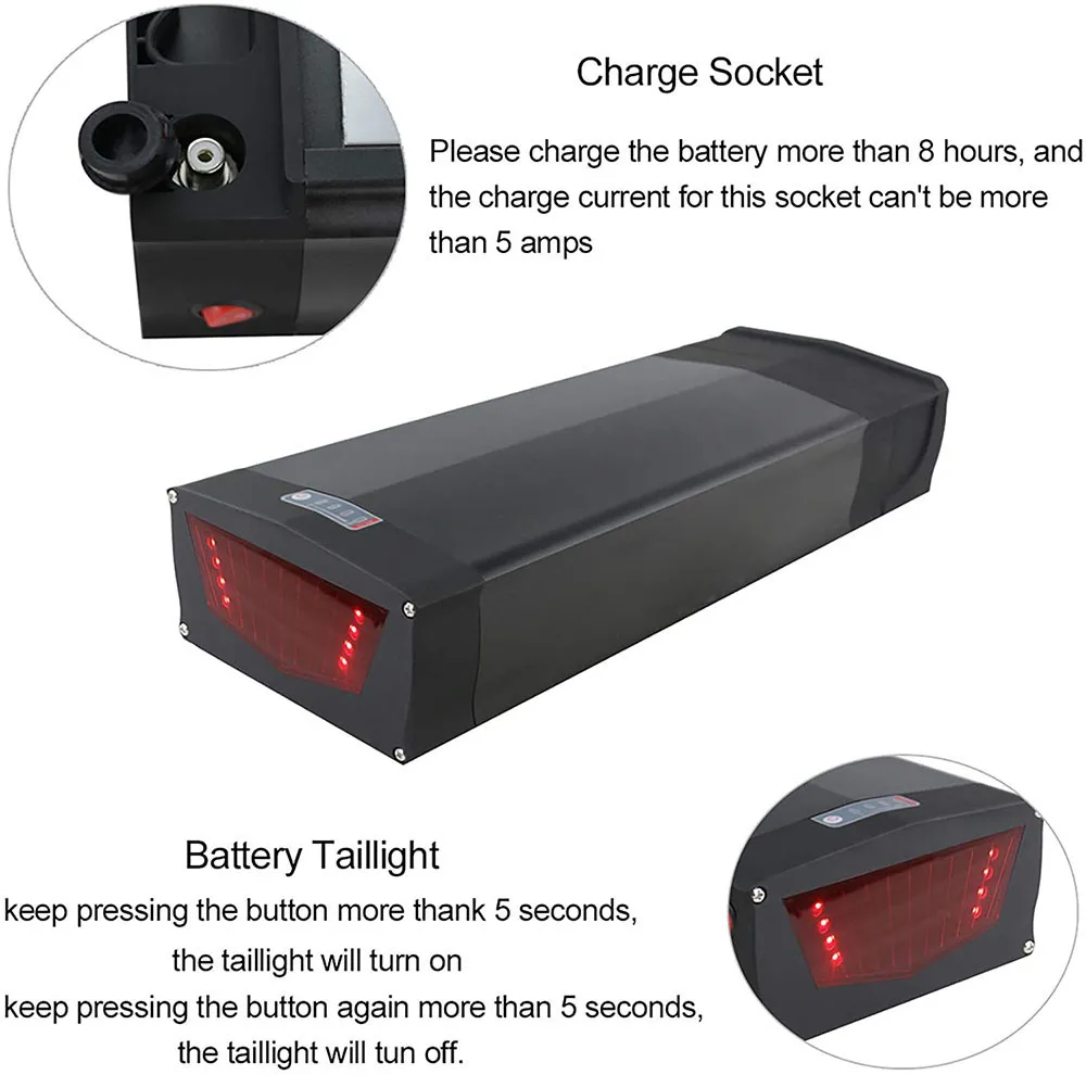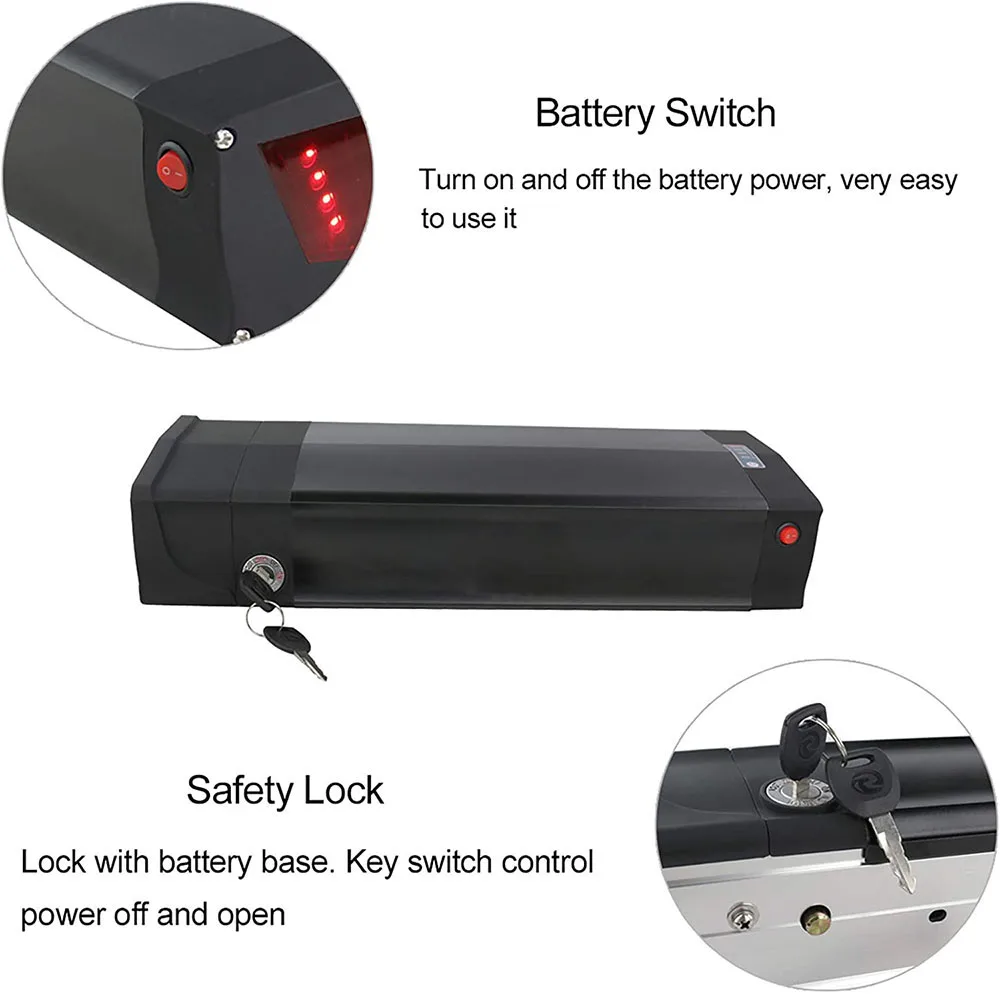 This Rear Rack eBike Battery enhances your riding experience by providing dependable, high-capacity power that extends your travel range and reduces downtime. Its robust construction and premium cells guarantee consistent performance even on demanding terrains or long-distance rides. The rack-mounted option adds convenience by securely positioning the battery without sacrificing cargo space, while the no-rack variant offers versatility for different bike configurations. Ideal for daily commuters or recreational riders, this battery ensures you stay powered longer and ride with confidence.