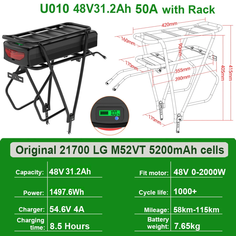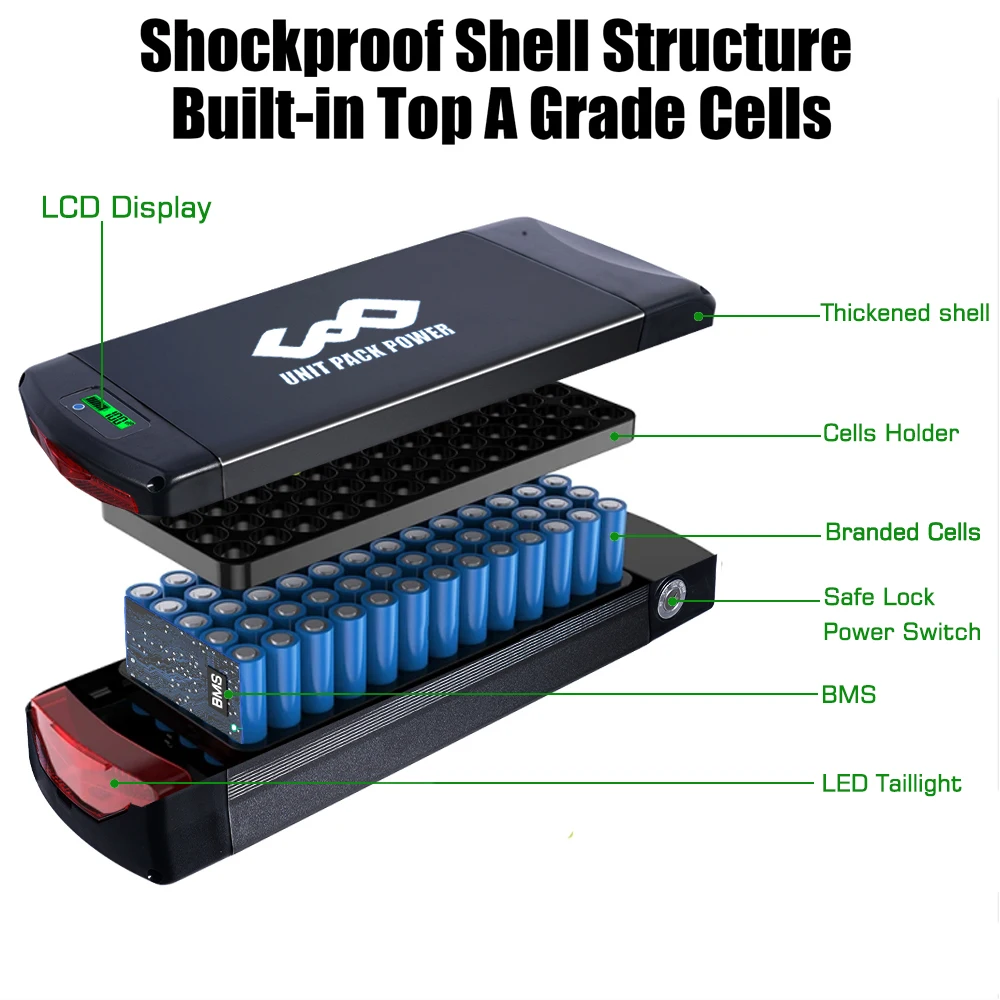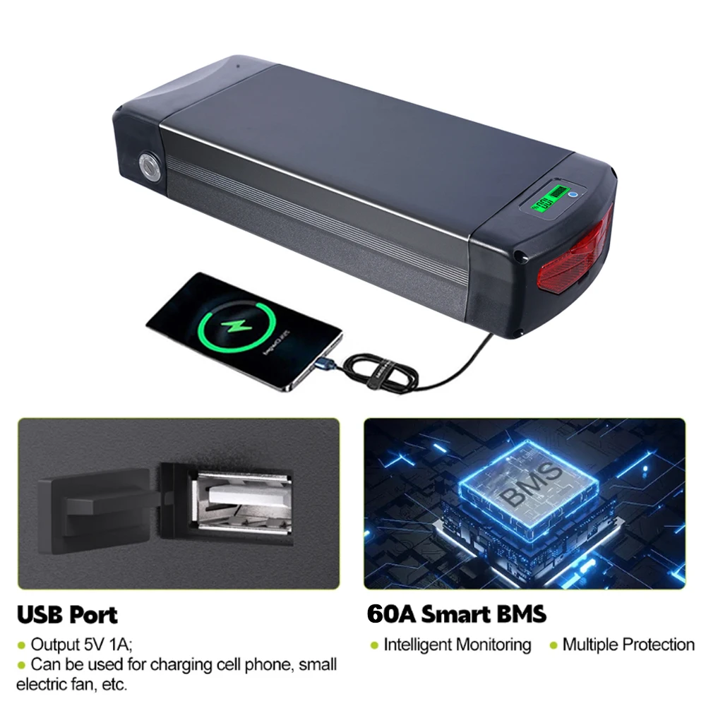 Rear Rack eBike Battery 21700 18650 52 V 48 V 27 Ah 72 V 20 Ah – Power Your Ride Efficiently