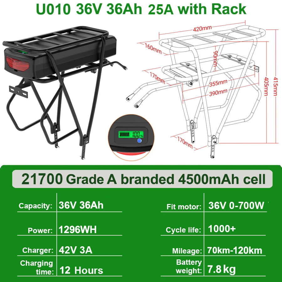 – Rack or No Rack Options: Flexibility to select a battery that mounts securely on the rear rack or a standalone battery depending on your bike’s design.