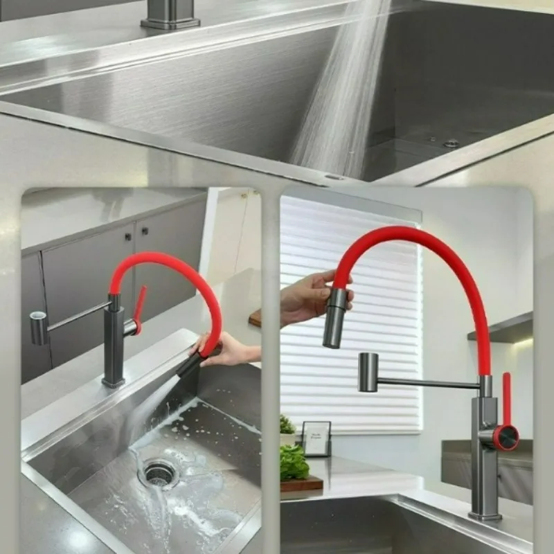Introducing the Red Kitchen Faucet, a stunning and highly practical addition that will transform your culinary workspace. Designed to seamlessly blend sophisticated aesthetics with cutting-edge functionality, this faucet is more than just a water dispenser; it’s a statement piece that enhances both the beauty and efficiency of your kitchen. Experience unparalleled convenience with its intuitive single-handle operation and versatile pull-out spray, making every task from washing produce to cleaning dishes an effortless pleasure.