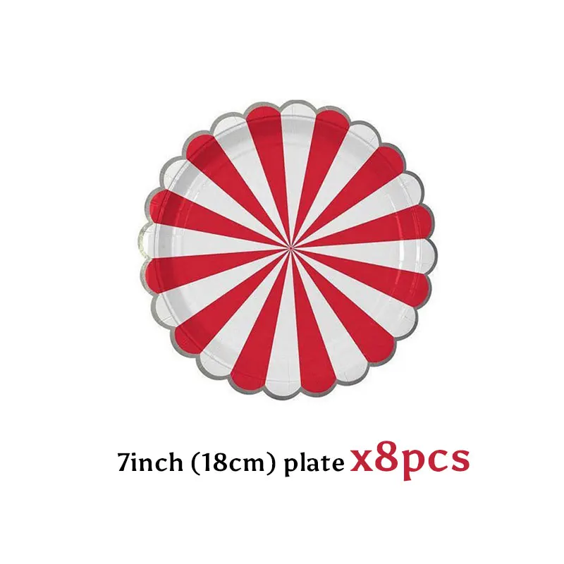 h1 Red White Silver Striped Circus Birthday Party Disposable Tableware Set