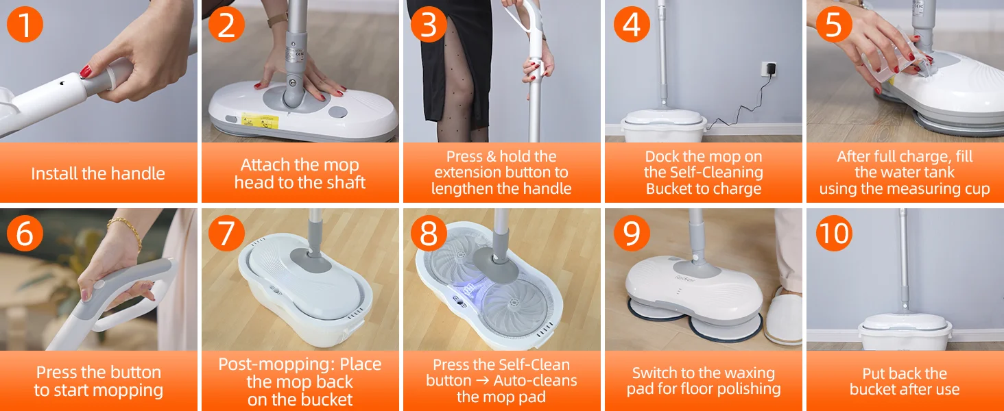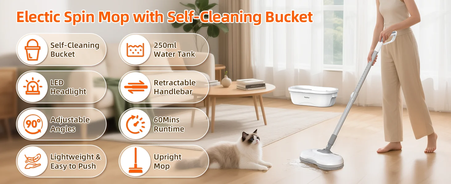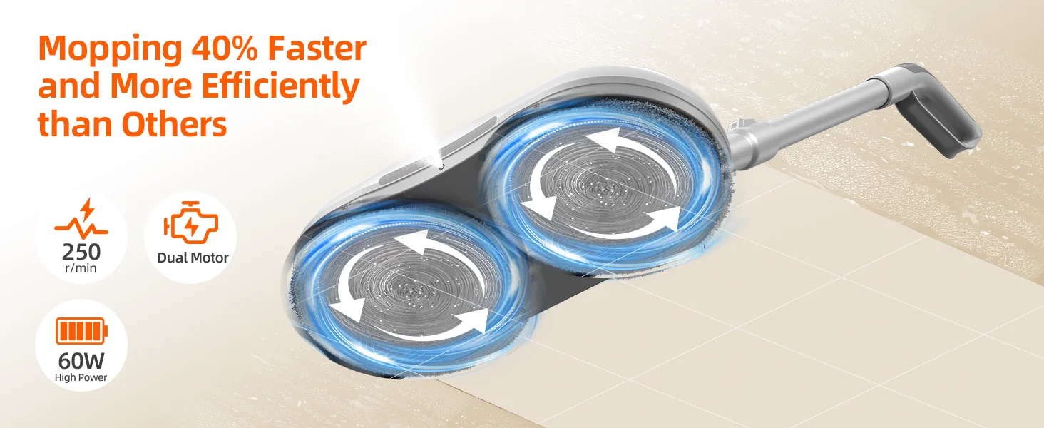 - Powerful Spin Technology: High-speed rotating mop heads deliver superior cleaning power, tackling tough grime and stains with ease.