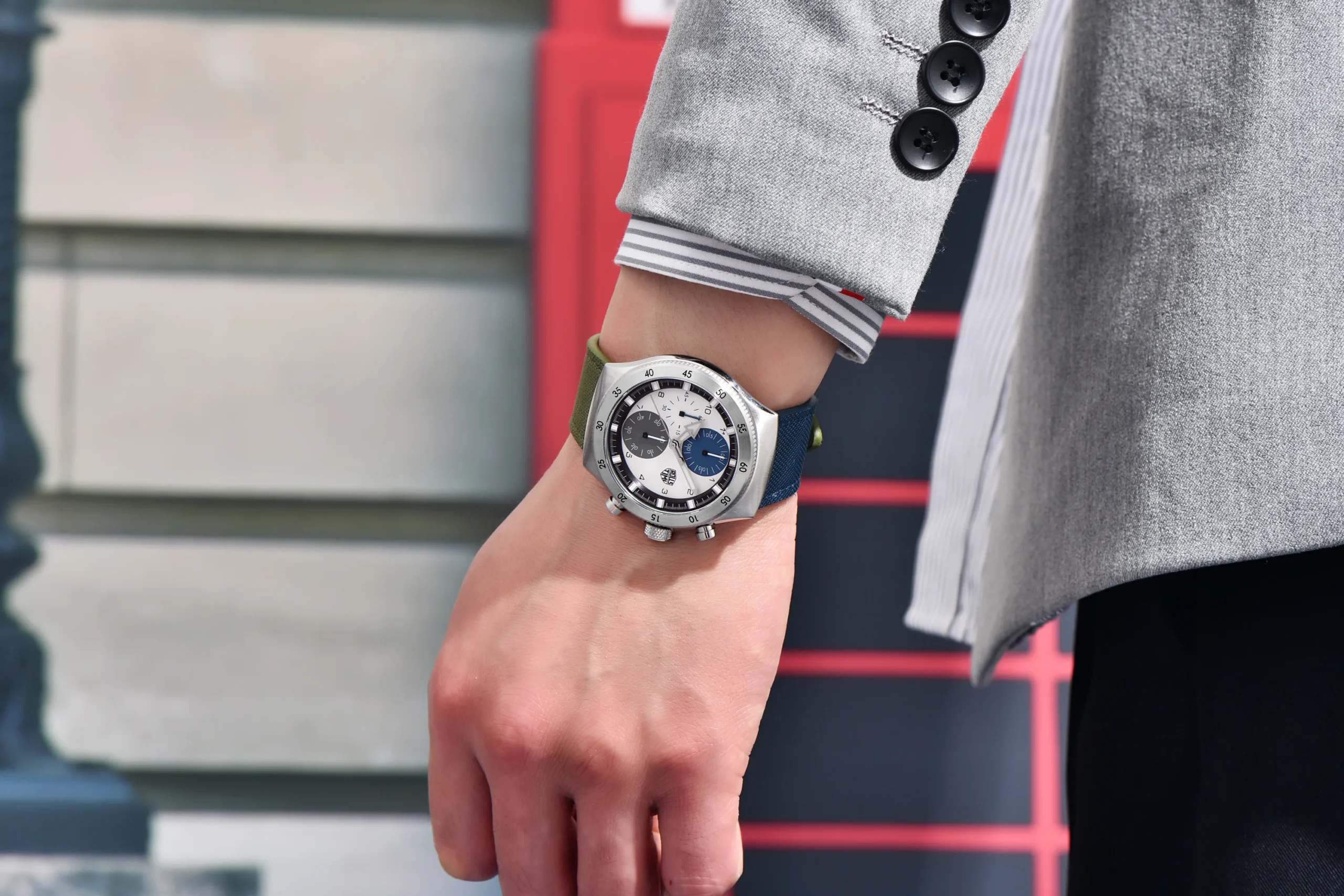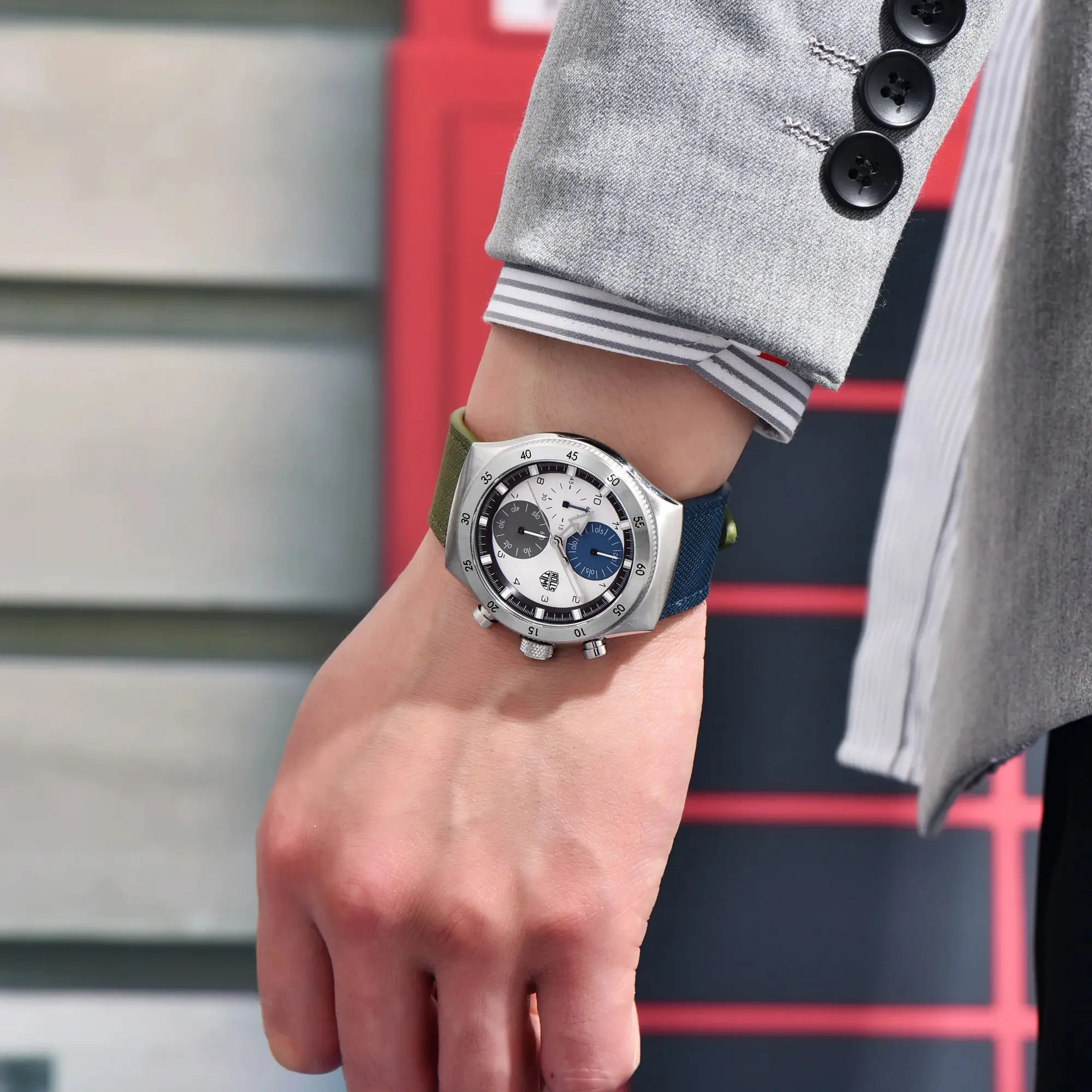 – Striking Two-Color Nylon Strap: Experience unparalleled comfort and durability with a premium nylon strap, available in three captivating color combinations: Blue Green, Green, and Gray.