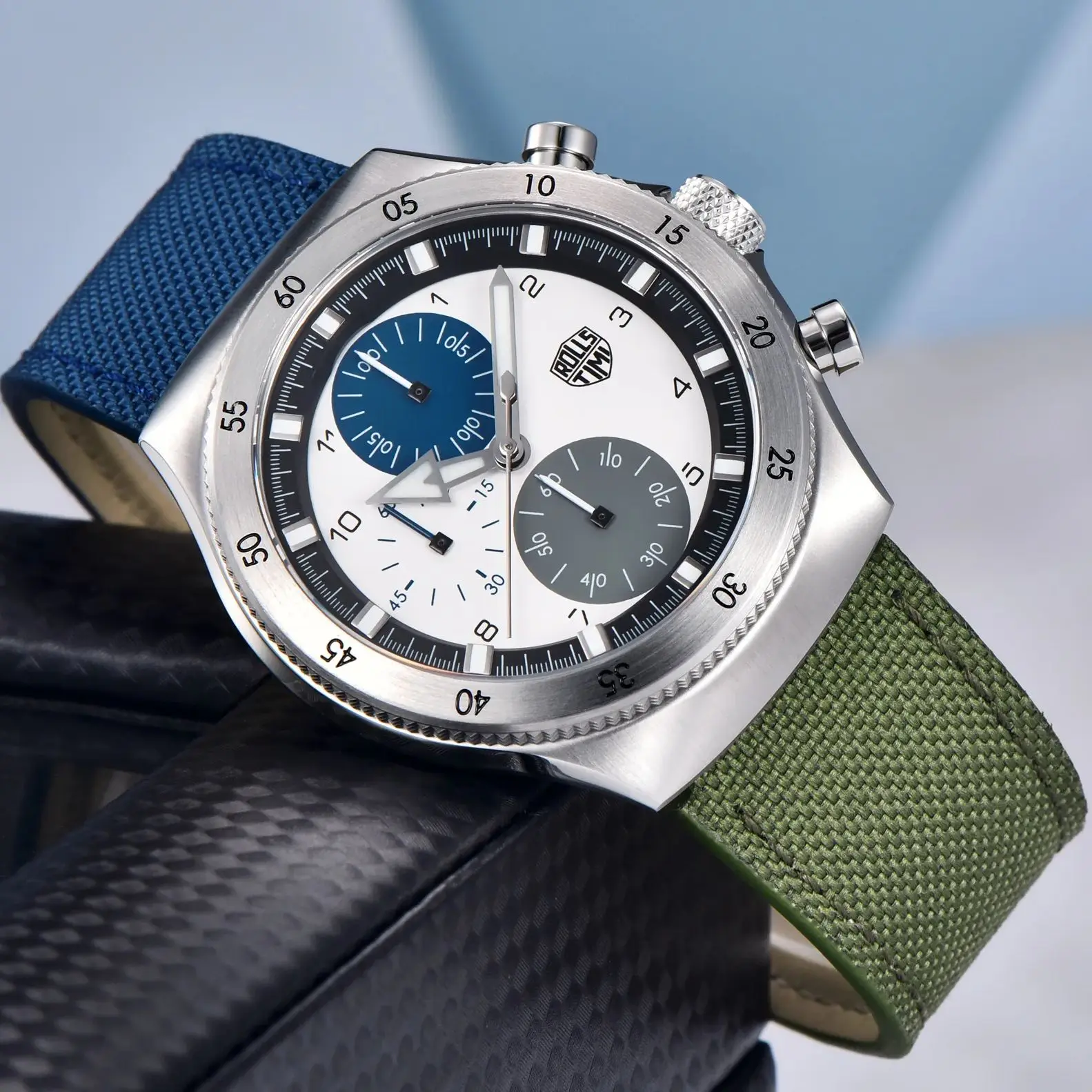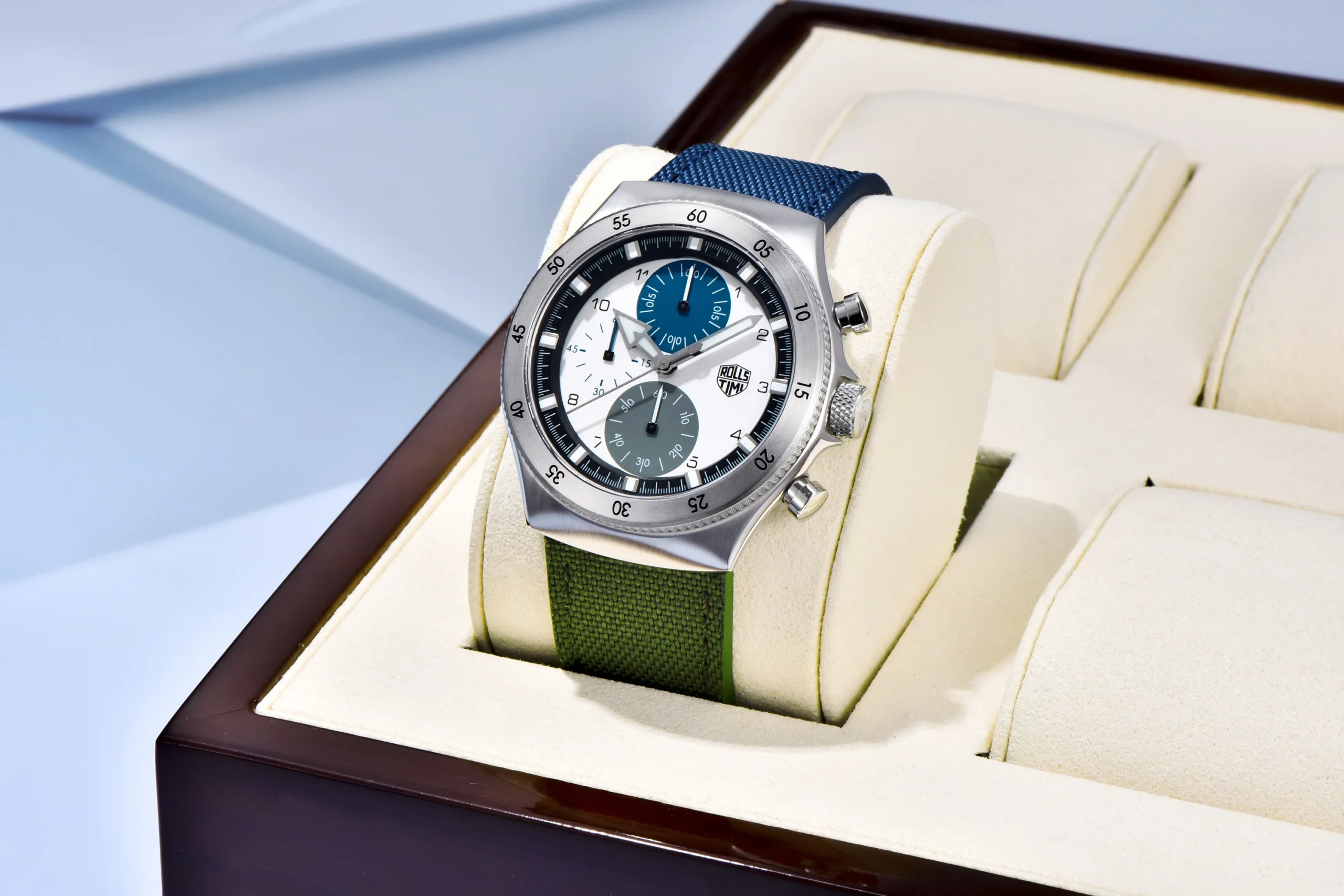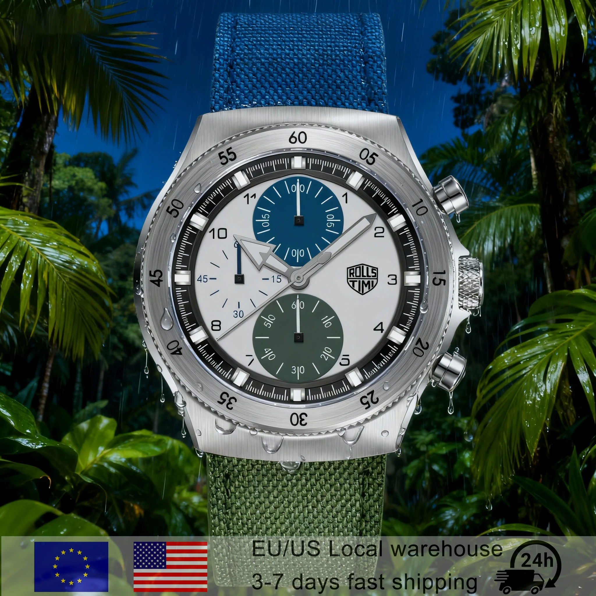 The Rolls Timi 2025 is crafted with high-quality materials to ensure longevity and style. The watch is engineered to withstand the rigors of daily life while maintaining its sophisticated appearance. Available colors: Blue Green, Green, Gray. Ships from the United States and Germany. Care Instructions: To maintain the watch’s appearance, gently wipe the case and strap with a soft, damp cloth. Avoid exposure to extreme temperatures or harsh chemicals.
