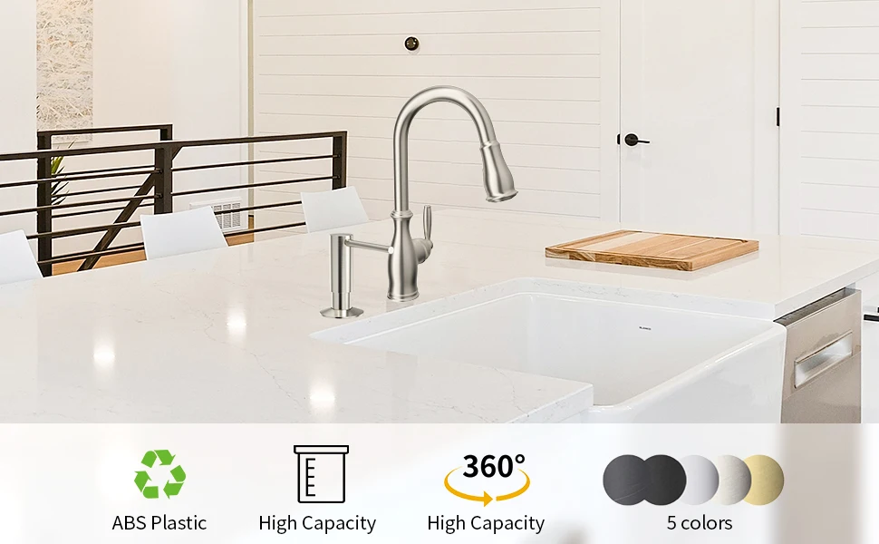 - Large Capacity Dispensing: Enjoy the convenience of dispensing a generous amount of liquid soap or detergent with each pump, perfect for busy kitchens and bathrooms.