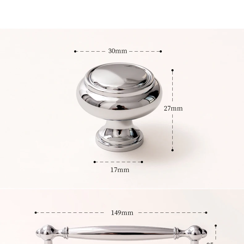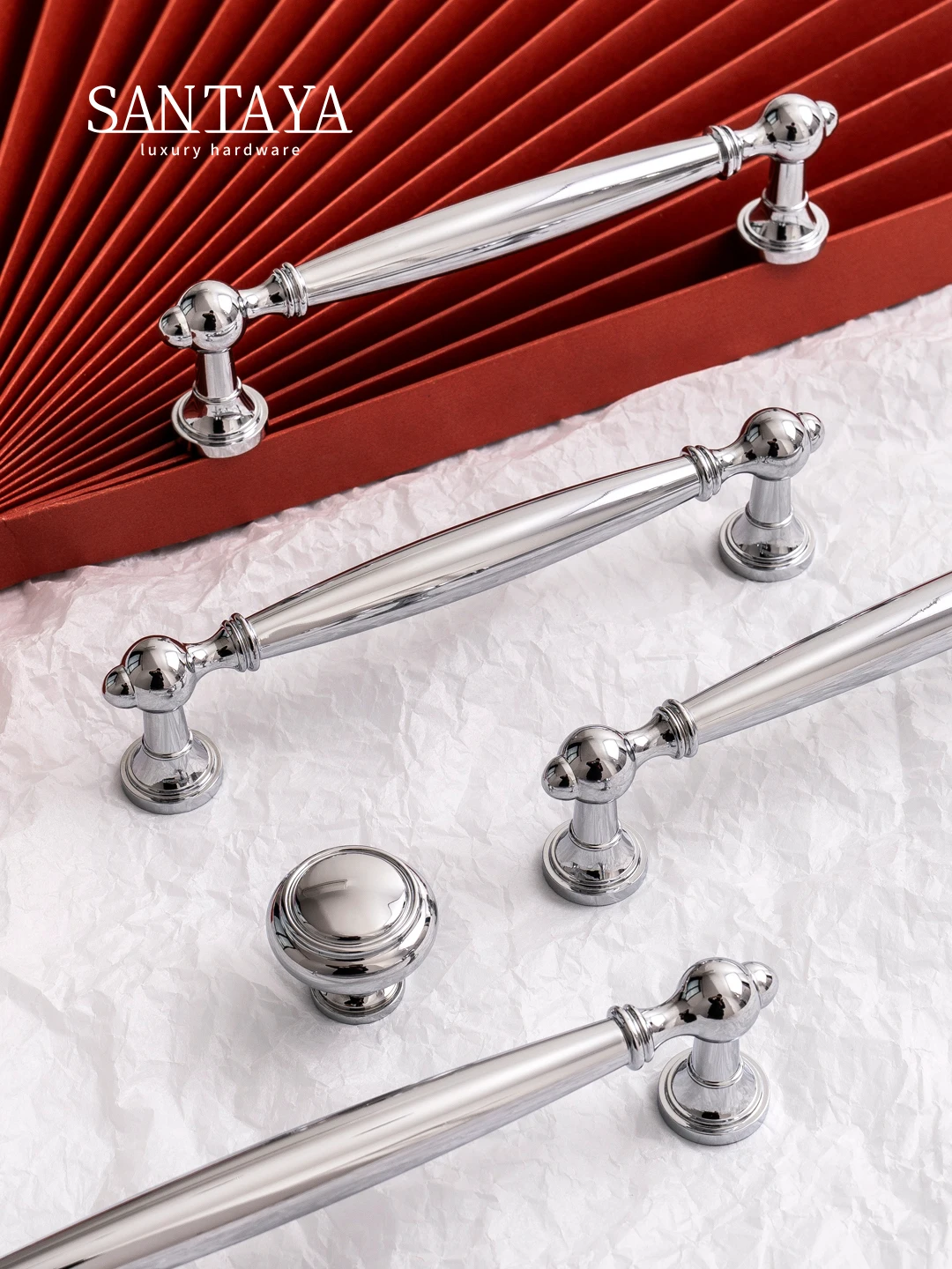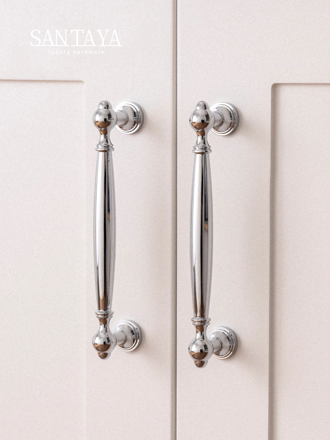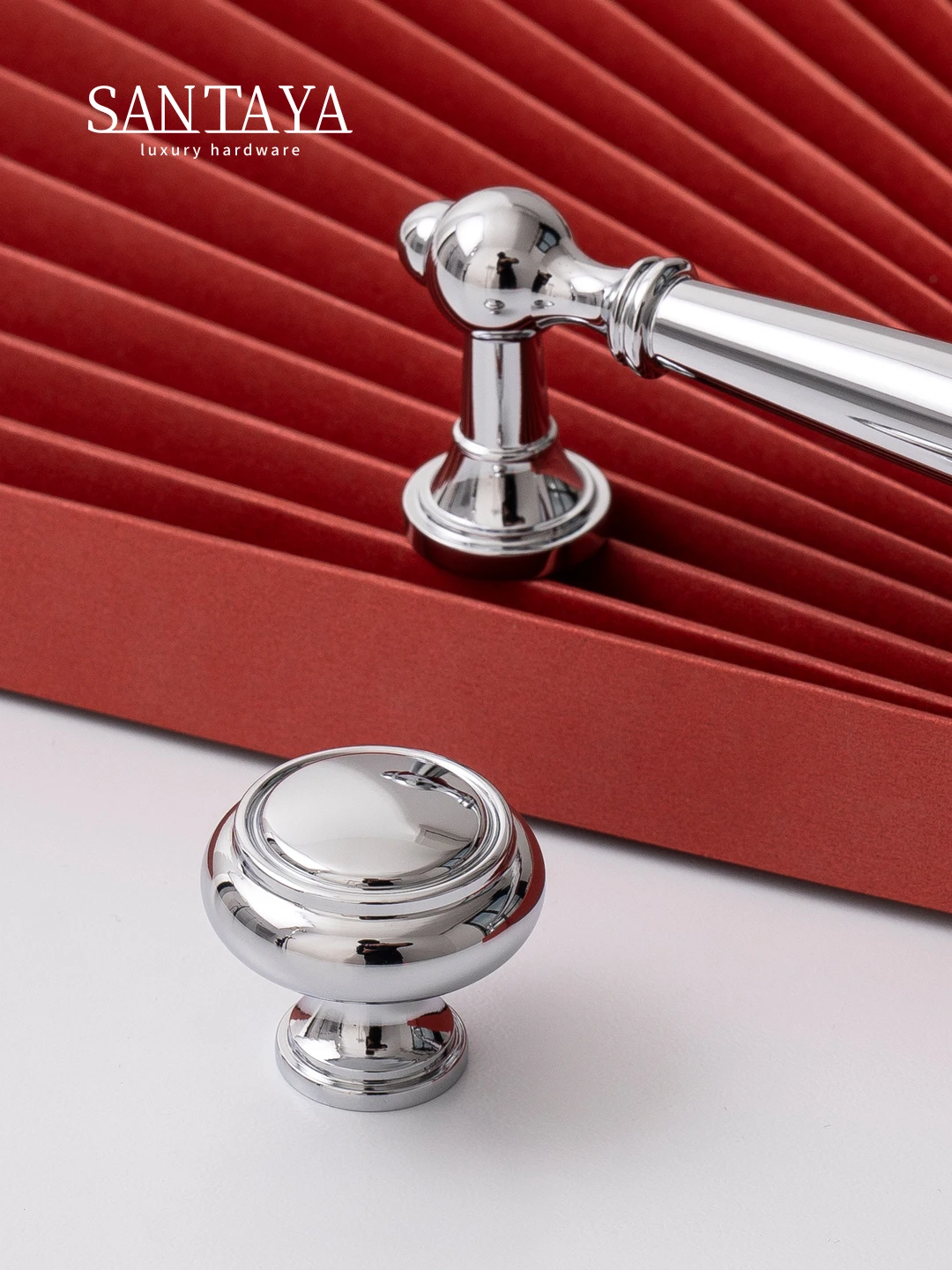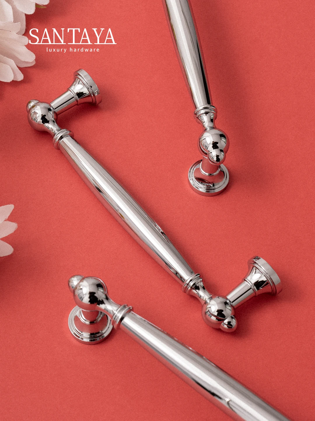 Discover the epitome of sophistication and functionality with Santaya Brass Furniture Handles. These exquisite chrome silver kitchen cabinet pulls, solid copper luxury wardrobe, dresser, and drawer knobs are designed to elevate the aesthetic of any room. Crafted with meticulous attention to detail, our handles seamlessly blend durability with timeless elegance, providing a touch of luxury to your everyday life.