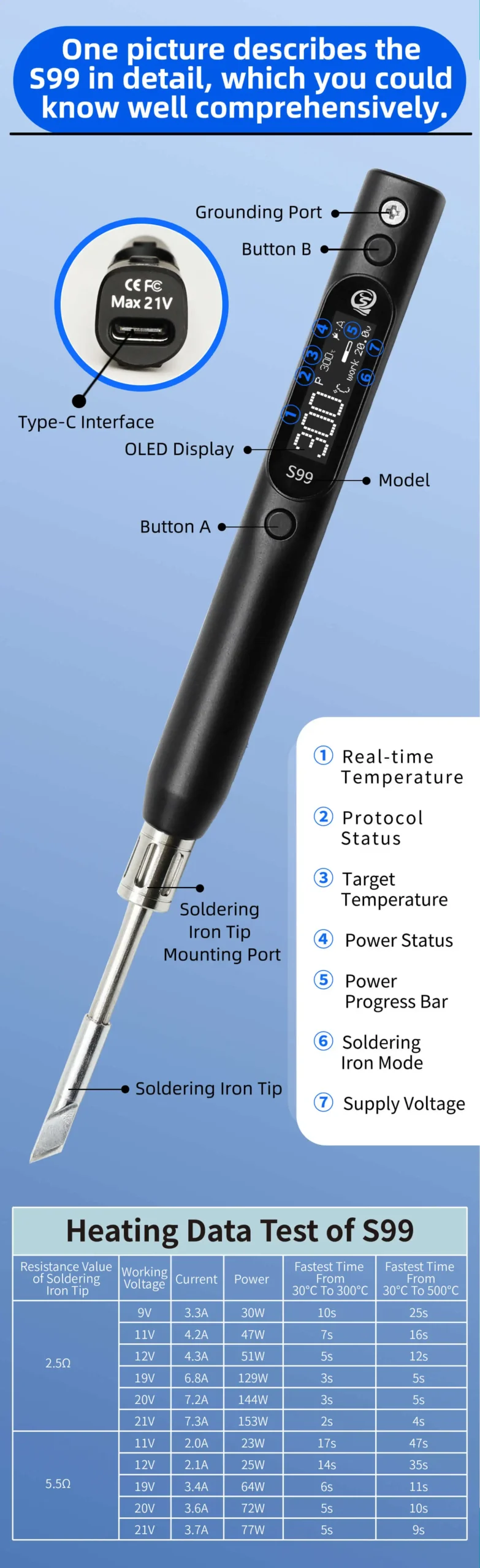 – Fast heat-up time and stable temperature control for precise soldering.