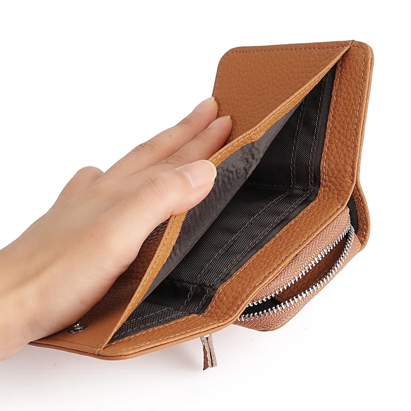 Compact Tri-fold Zipper Coin Purse with RFID Blocking Technology
