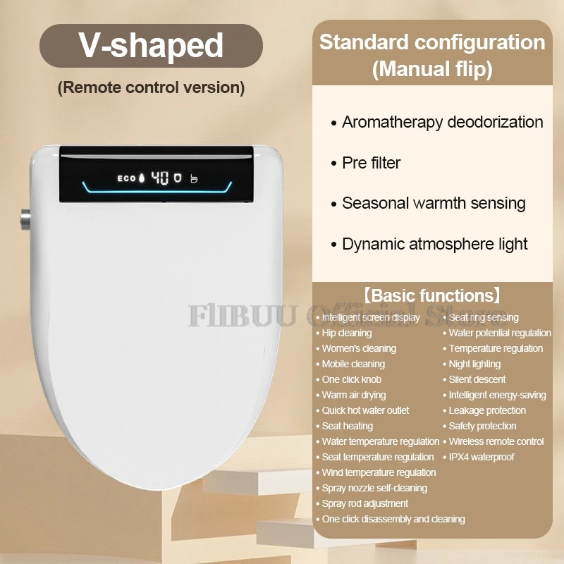 Crafted from durable, high-quality materials, this bidet seat is built for longevity and ease of maintenance. The smooth surface is easy to wipe clean, ensuring a hygienic environment. Available in various models to perfectly match your toilet's shape and your desired level of sophistication: V-shape-Standard, U-shape-Ultimate, V-shape-Ultimate, V-shape-Premium, U-shape-Premium, U-shape-Standard. Please refer to the product images to select the correct model for your toilet. For optimal performance and longevity, regular cleaning with mild, non-abrasive household cleaners is recommended. Electrical connection is required for heated seat, warm water, and dryer functions.