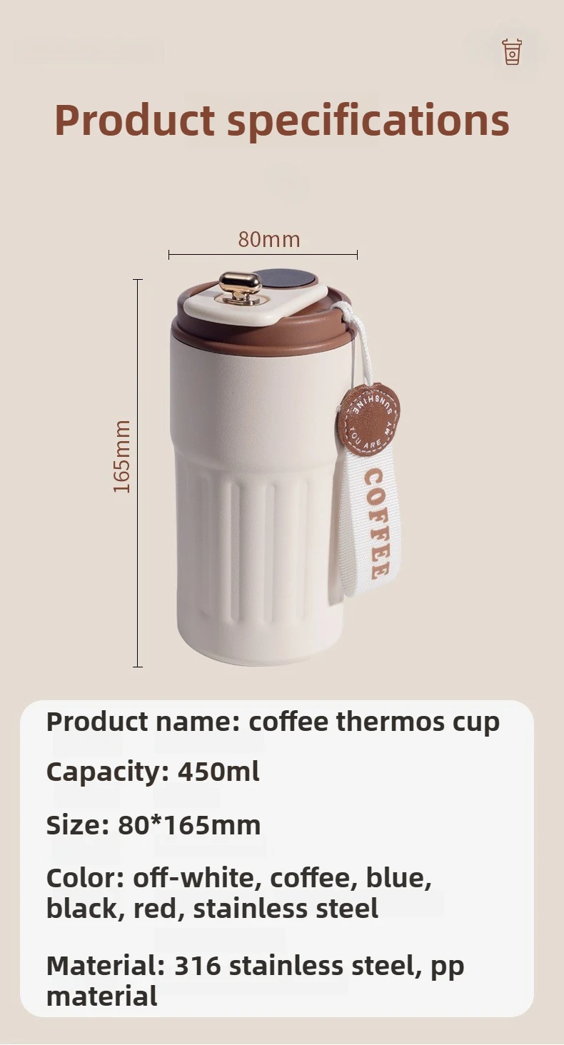 Vacuum Insulated Coffee Cup Travel Thermos for Hot and Cold Beverages